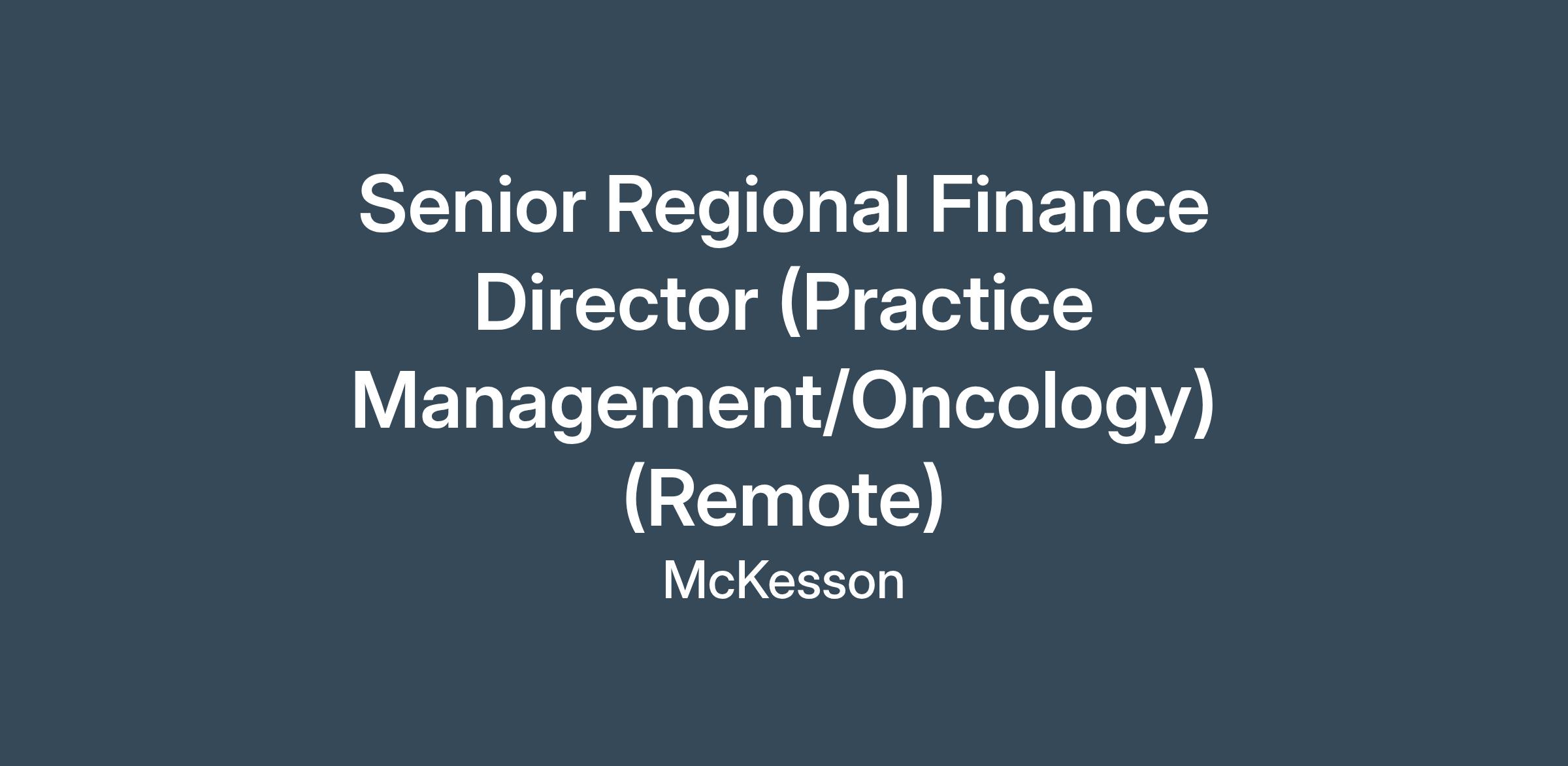 The US Oncology Network has an immediate need of a qualified candidate for the role of Sr. Regional Finance Director to join the Financial Operations team. This is a full-time position, reporting to the Vice President of Finance Operations.