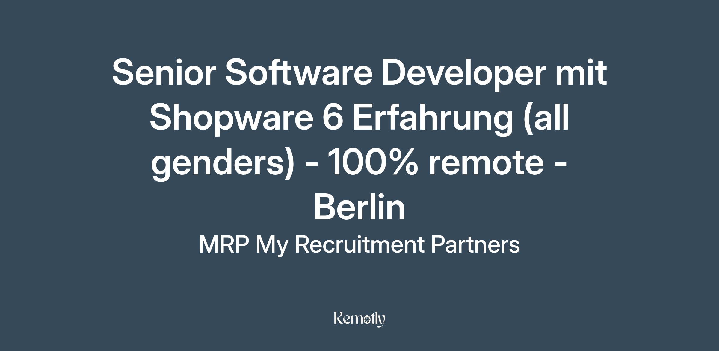 Senior Software Developer mit Shopware 6 Erfahrung (all genders) - 100% remote - Berlin