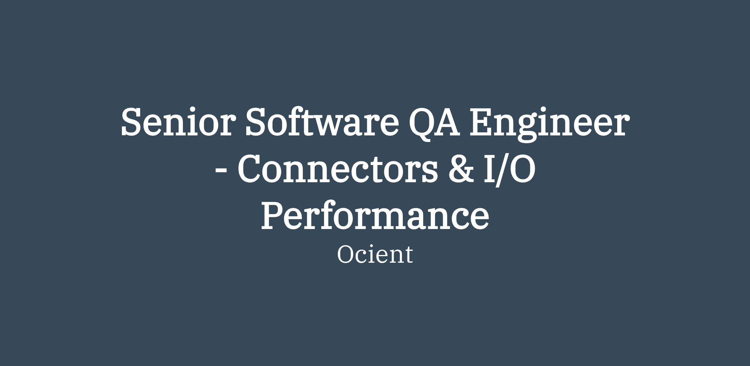 Job Title: Senior Software QA Engineer - Connectors & I/O Performance
