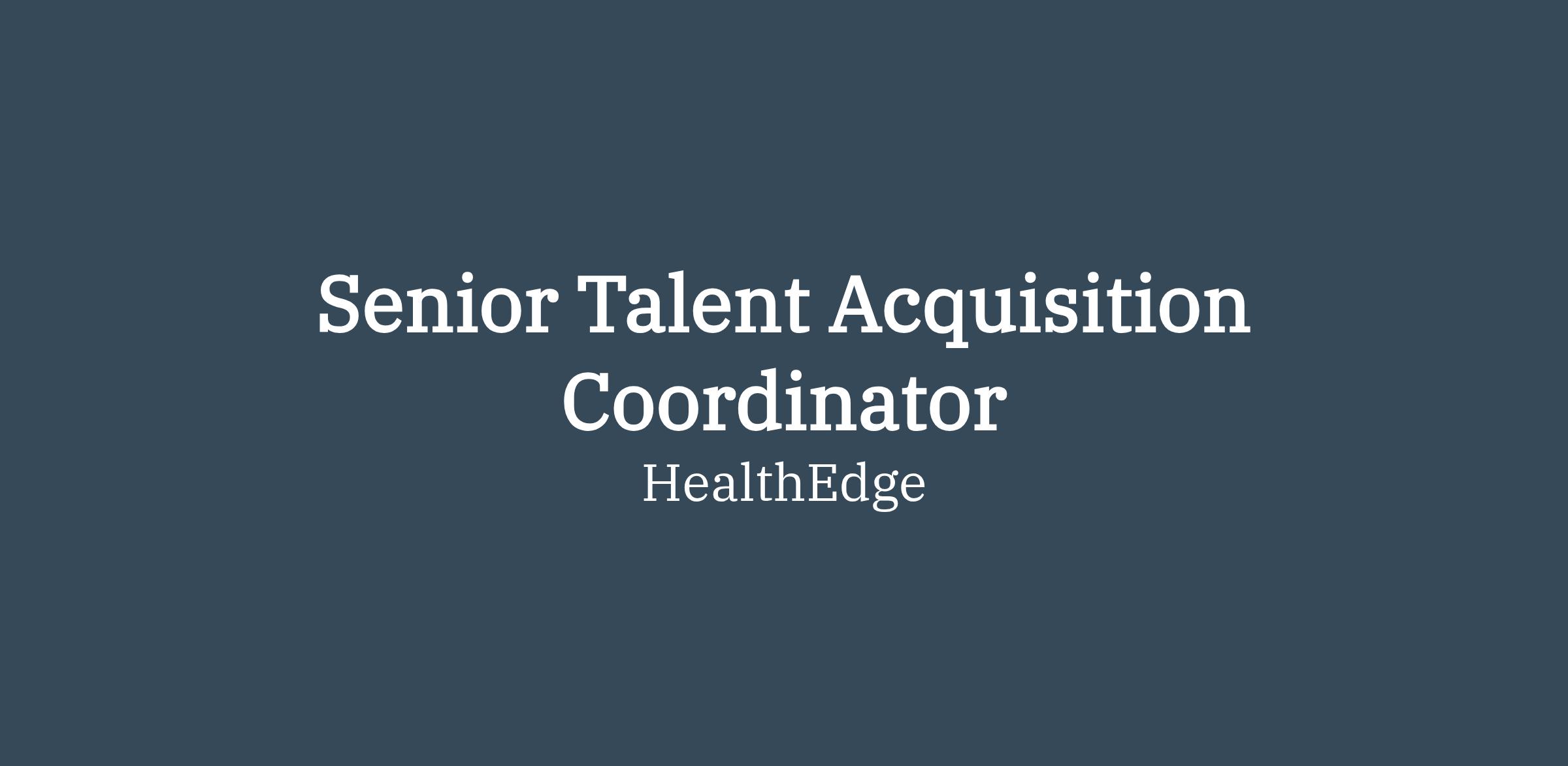 At HealthEdge we know that our people are our greatest asset. As our company continues to grow, we are looking for a talented Senior TA Coordinator to support us as we build incredible teams and continue to expand our collaborative culture.