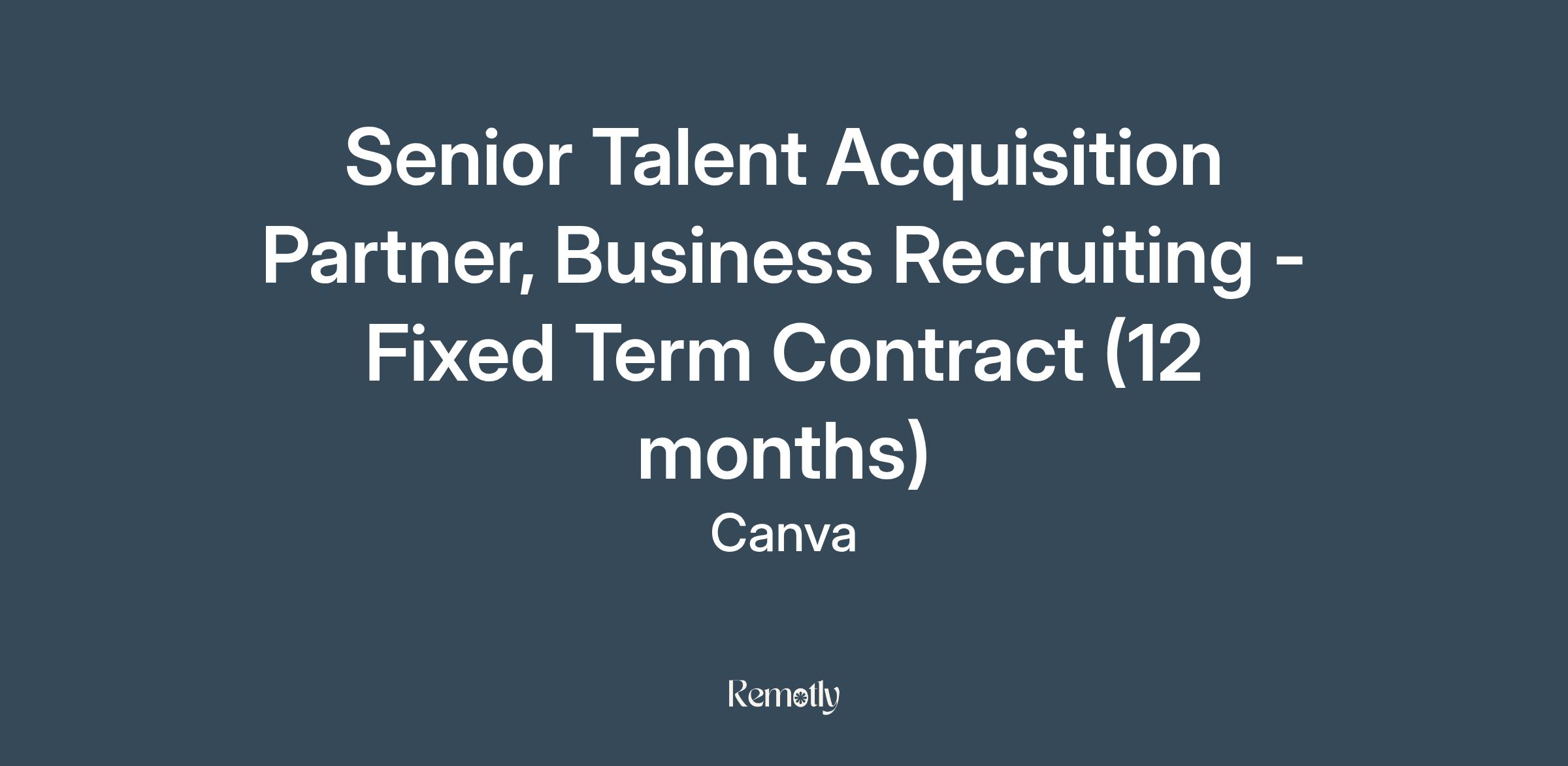 The Business TA team hires for our Business functions across Canva, such as Marketing, Finance, Legal, Operations, People, Design, Content, and Vibe (Workplace Experience). We are looking for an Australia based Senior Talent Acquisition Partner to join the Business TA team.