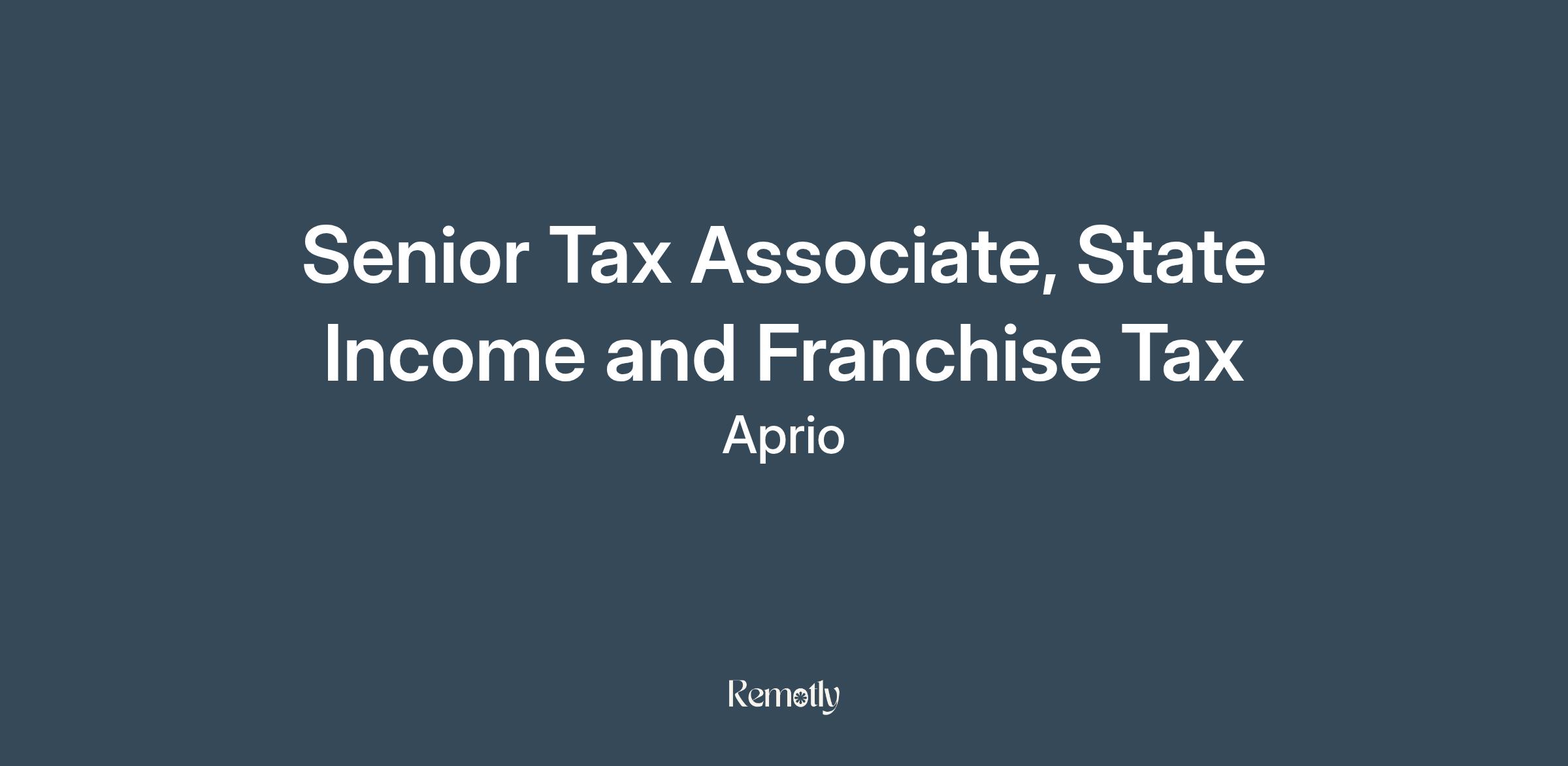 Join Aprio's State and Local Tax team and you will help clients maximize their opportunities. Aprio is a progressive, fast-growing firm looking for a Senior Tax Associate, State Income and Franchise Tax to join their dynamic team.