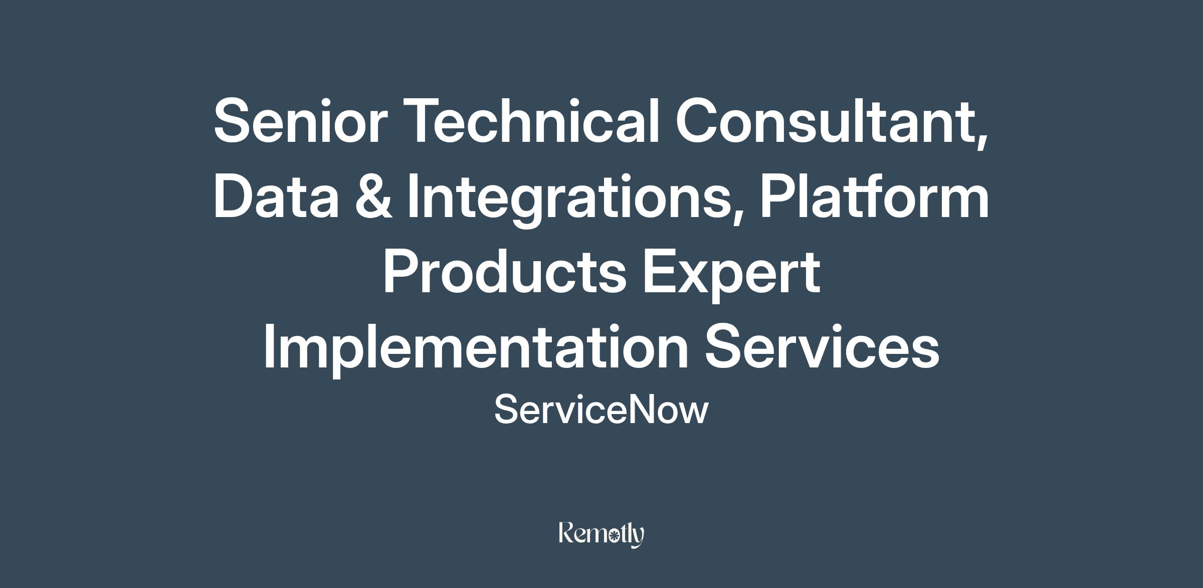 Senior Technical Consultant, Data & Integrations, Platform Products Expert Implementation Services