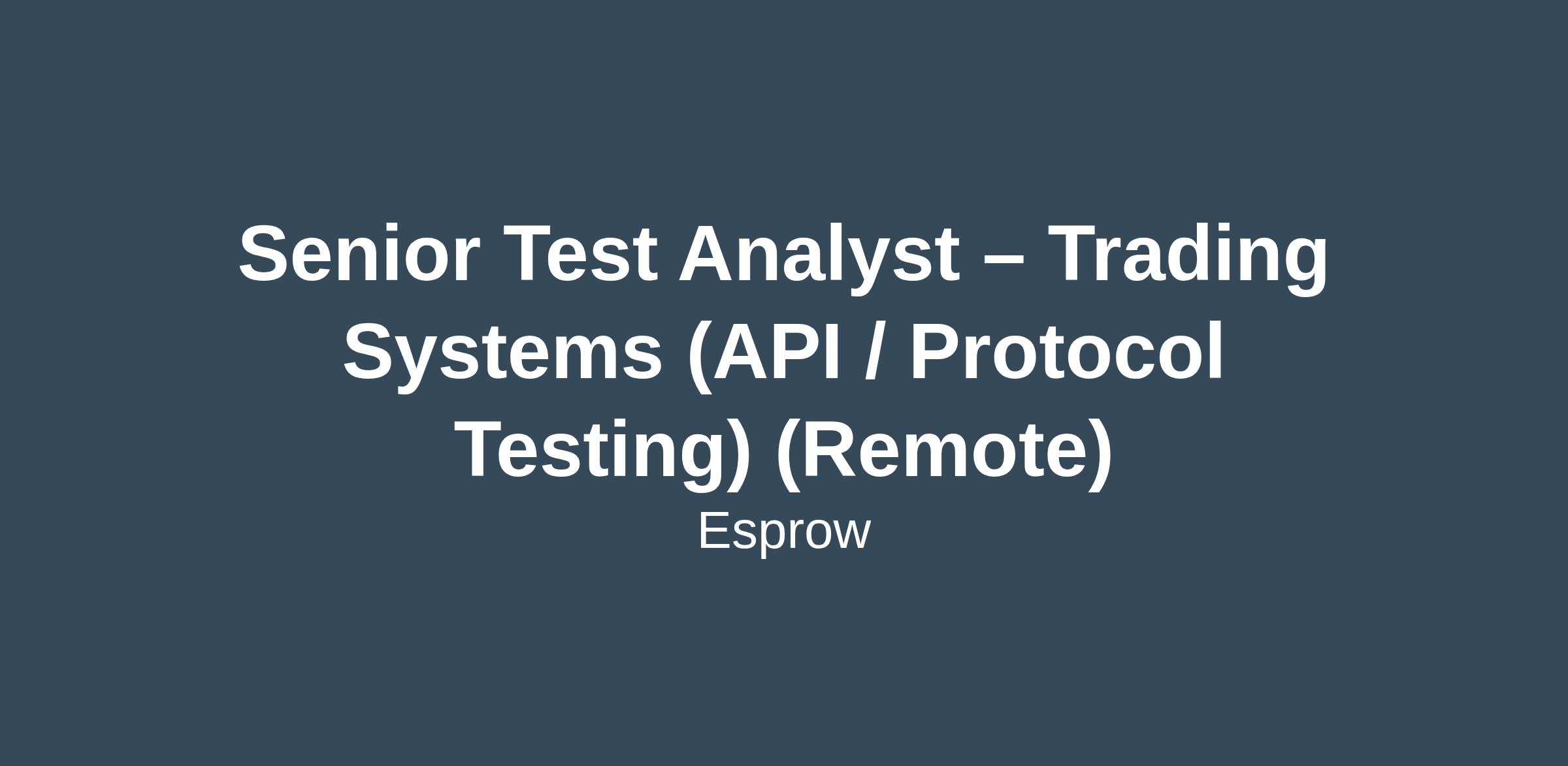- Contribute to QA testing efforts of Esprow’s products, with a primary focus on FIX Protocol, trading APIs, and multi-protocol financial systems.