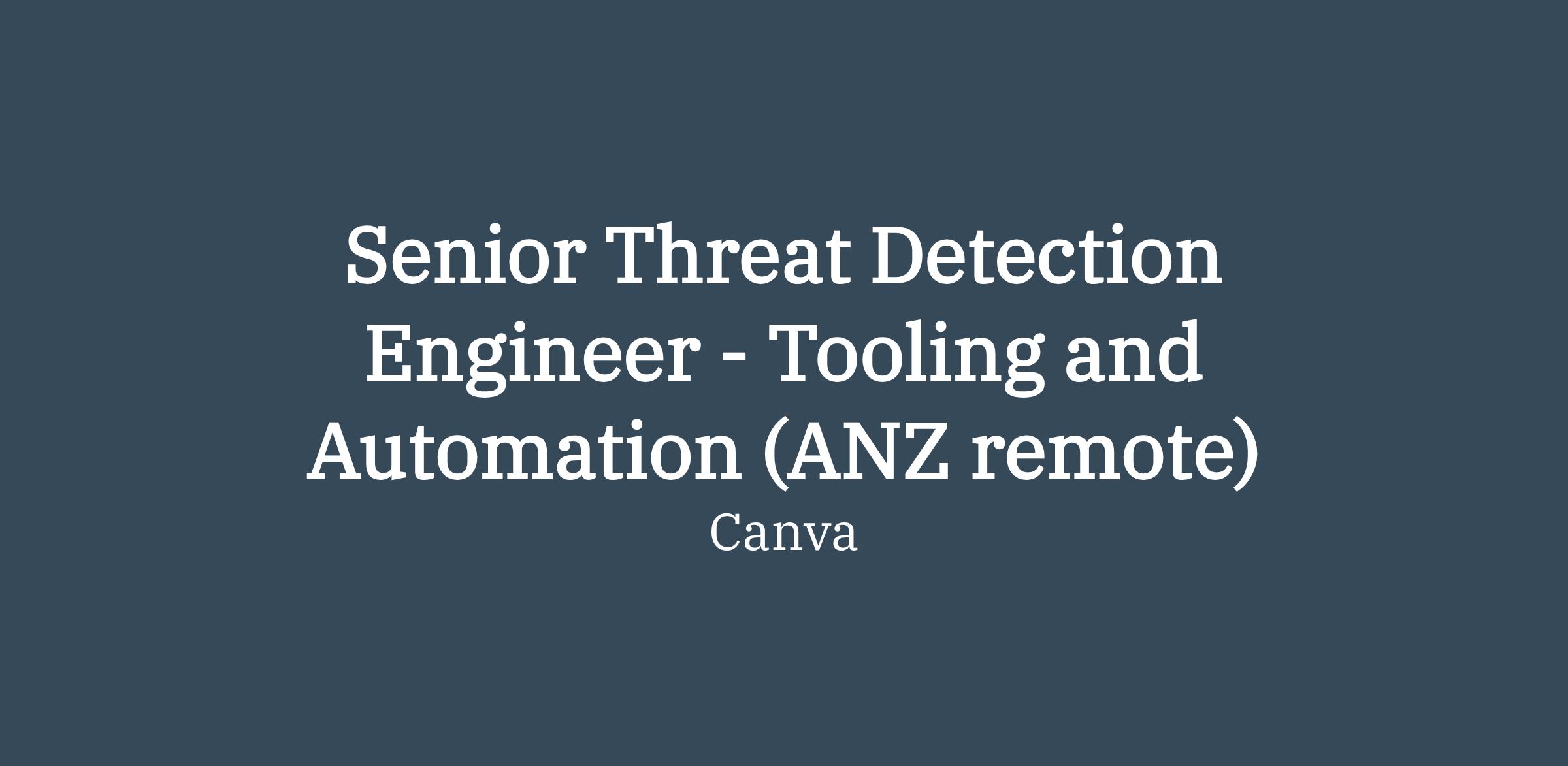 You'll be joining DETA at a transformational moment as we mature our service-oriented engineering discipline. Your work will directly enable Canva to protect our vision to empower the world to design by and match the scale of cyber threats through automation and platform engineering. This is an opportunity to shape the future of detection engineering at Canva, establishing the technical and operational foundations that will support our security program as we continue scaling globally.