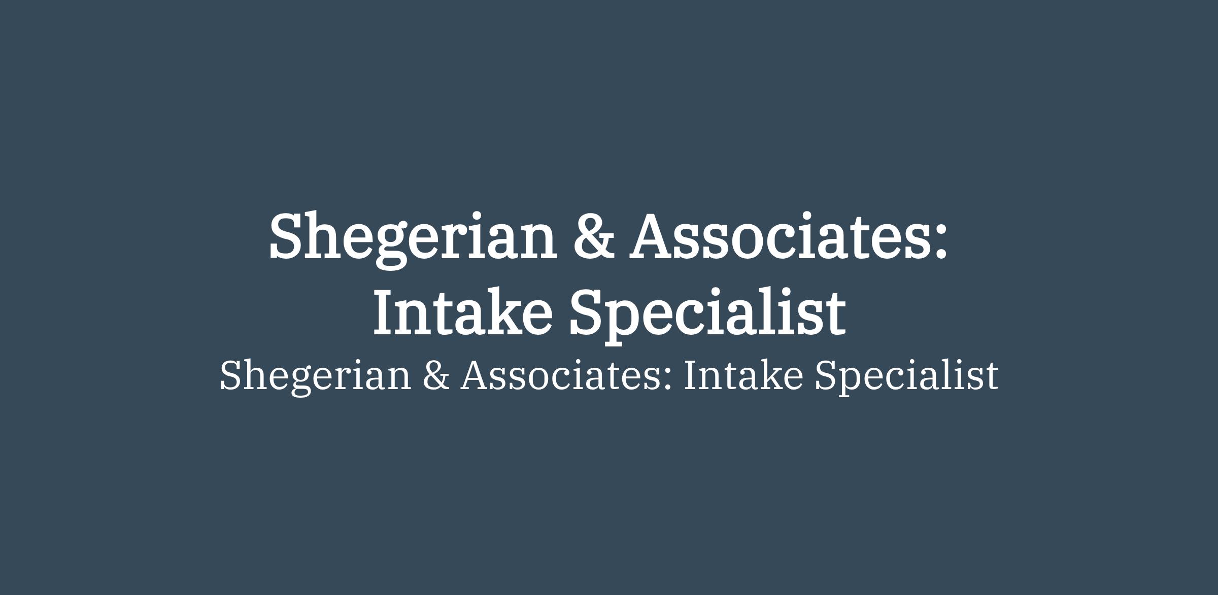 Shegerian & Associates: Intake Specialist