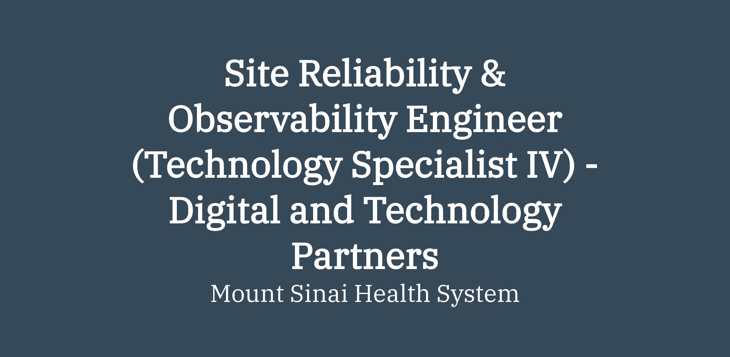 DescriptionSite Reliability & Observability Engineer (Technology Specialist IV) - Digital and Technology Partners - Remote