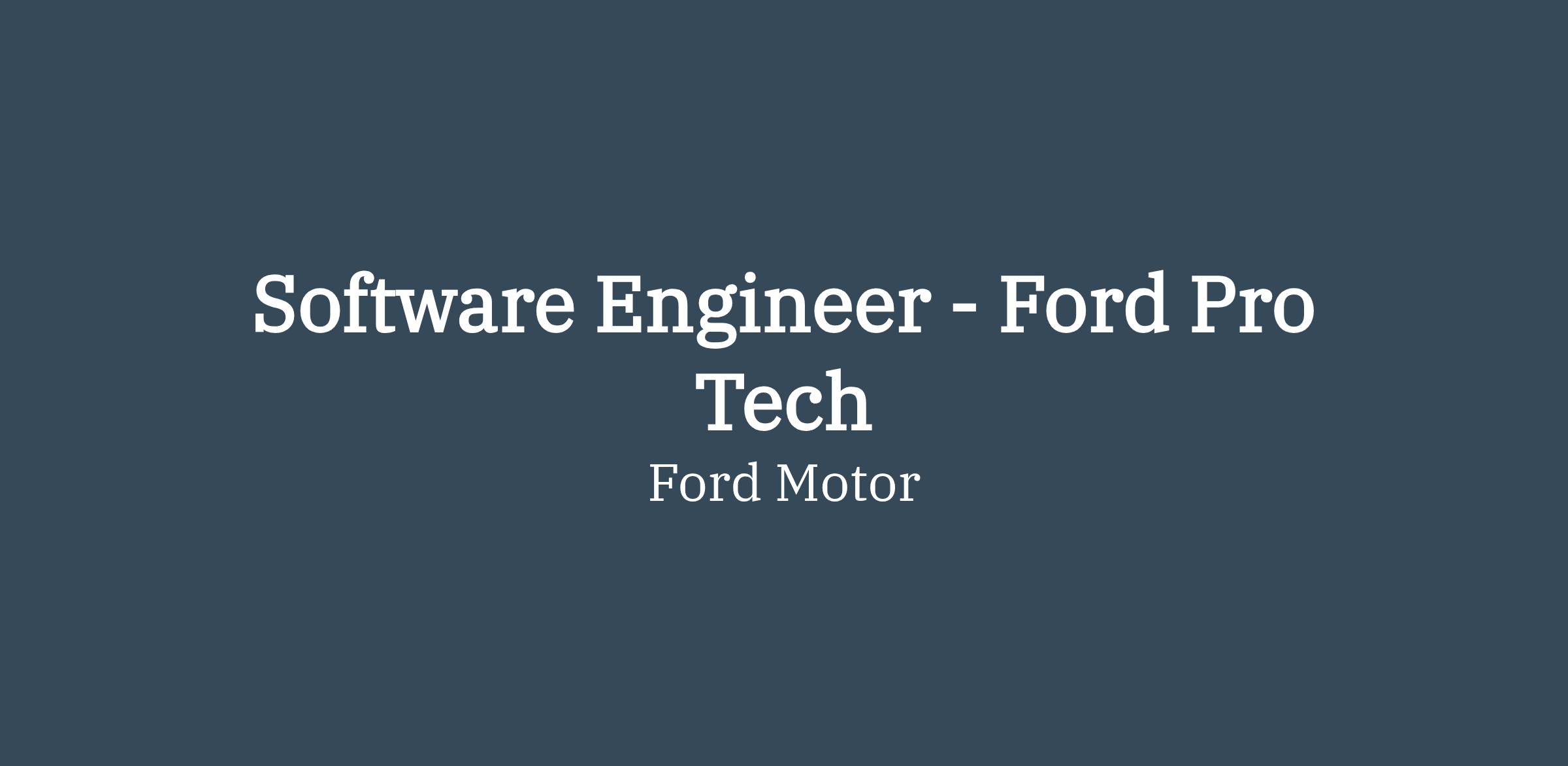 At Ford Motor Company, we believe freedom of movement drives human progress. We also believe in providing you with the freedom to define and realize your dreams. With our incredible plans for the future of mobility, we have a wide variety of opportunities for you to accelerate your career potential as you help us define tomorrow's transportation. Ford Pro is a new global business within Ford committed to commercial customer productivity. Ford Pro delivers a work-ready suite of vehicles, accessories and services for virtually every vocation, backed by technology and engineered for uptime. A true one-stop shop, offering a full portfolio of electrified and internal combustion vehicles designed to integrate seamlessly with the Ford Pro ecosystem, helping customers' businesses thrive today and into the new era of electrification. Ford Pro is looking for Software Engineers that embrace Agile-eXtreme Programming principles to deliver innovative software products for Ford Motor Company and our commercial customers.