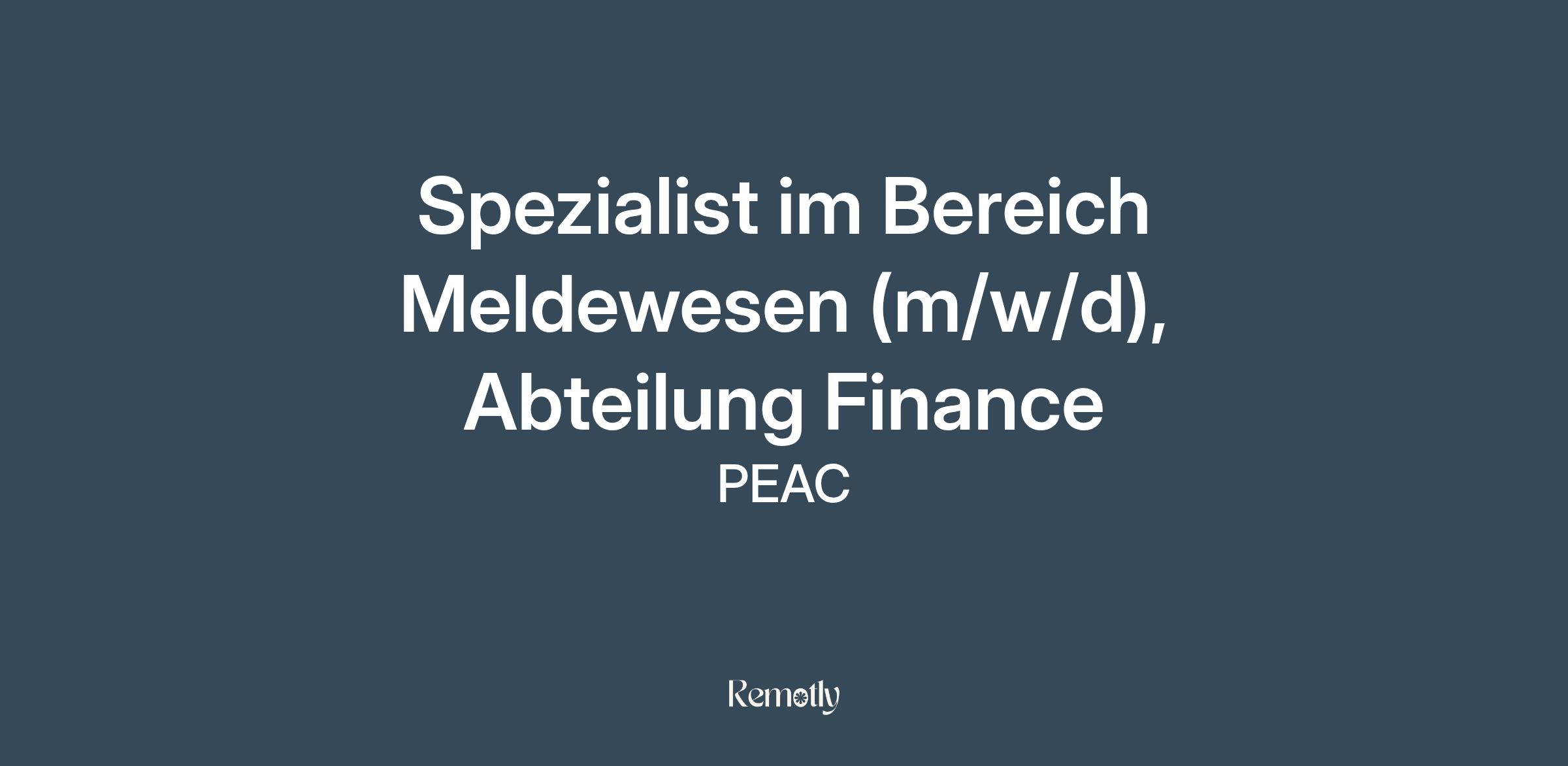 Wir wachsen stetig und suchen für unsere Abteilung Finance am Hauptsitz in Hamburg einen Spezialist im Bereich Meldewesen (m/w/d), Abteilung FinanceUnser UnternehmenPEAC Solutions (Pan-European A