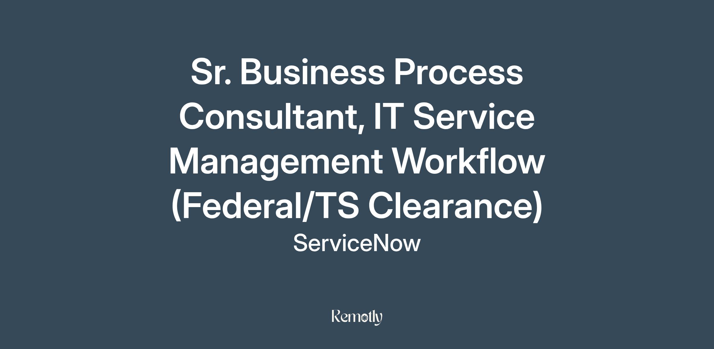 The Sr. Business Process Consultant, (ITSM) IT Service Management Workflow is the functional and process expert of a customer engagement team – consulting with federal customers and guiding them in the endeavor of transitioning business requirements to configuration requirements of the ServiceNow SPM products – all with the goal of accelerating and driving customer business outcomes.