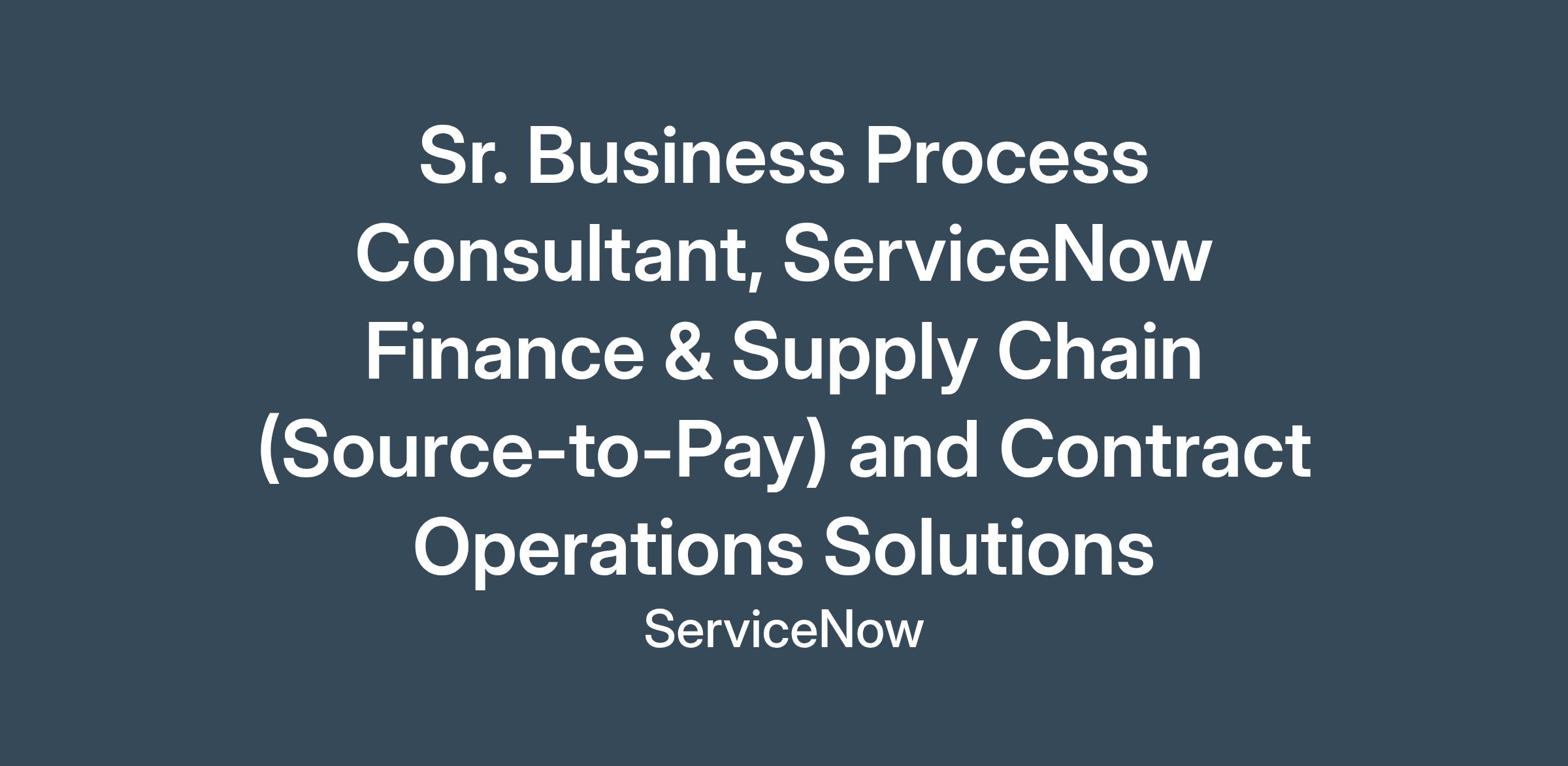 Sr. Business Process Consultant, ServiceNow Finance & Supply Chain (Source-to-Pay) and Contract Operations Solutions