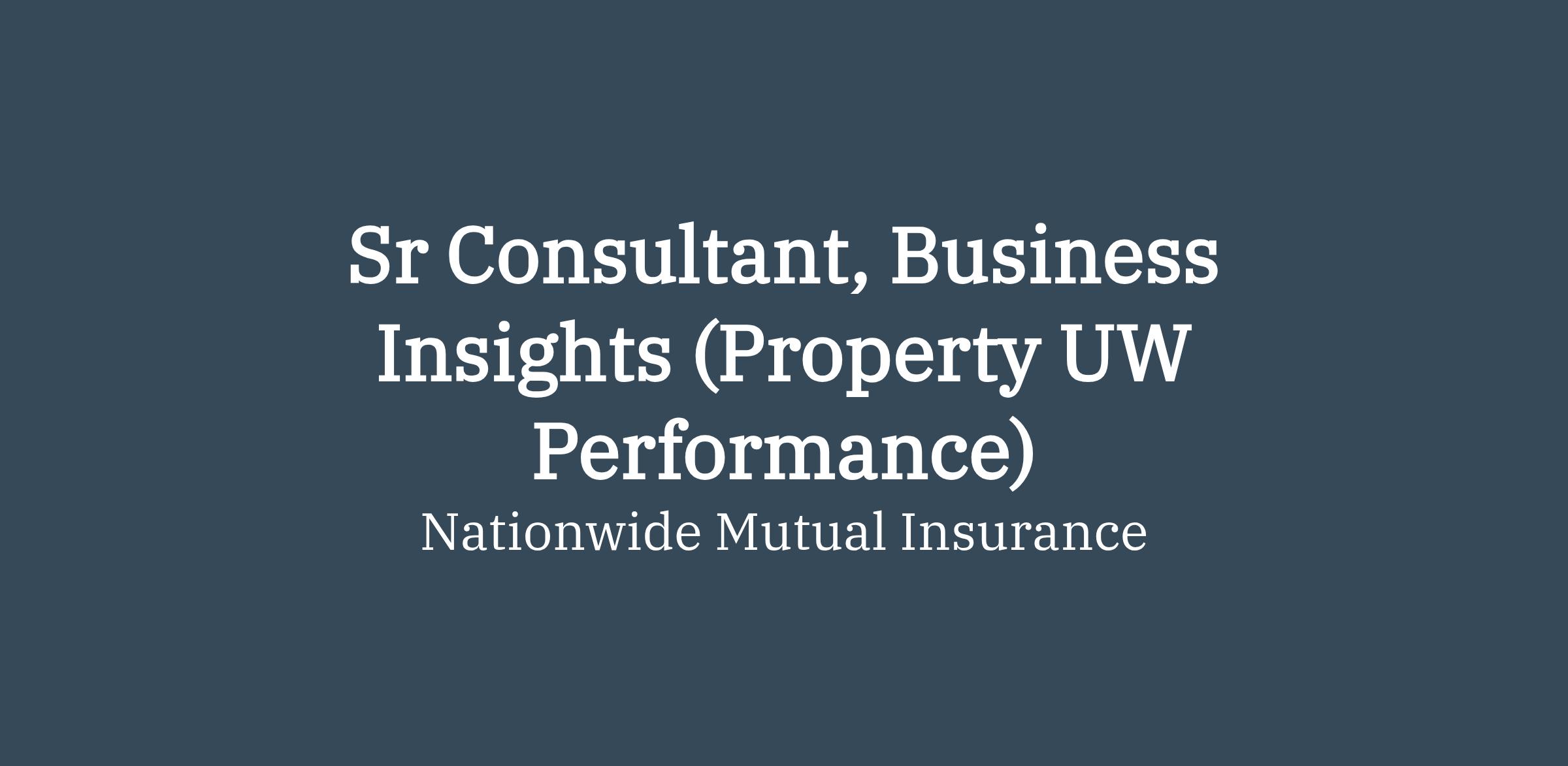Nationwide pays on a geographic-specific salary structure and placement within the actual starting salary range for this position will be determined by a number of factors including the skills, education, training, credentials and experience of the candidate; the scope, complexity and location of the role as well as the cost of labor in the market; and other conditions of employment. If a Sales job, Sales Incentives, based on performance goals are possible in addition to this range. Note on Compensation for Part-Time Roles: Please be aware that the salary ranges listed below reflect full-time compensation. Actual compensation may be prorated based on the number of hours worked relative to a full-time schedule.The national salary range for Sr Consultant, Business Insights : $138,000.00-$243,000.00The expected starting salary range for Sr Consultant, Business Insights : $138,000.00 - $206,000.00