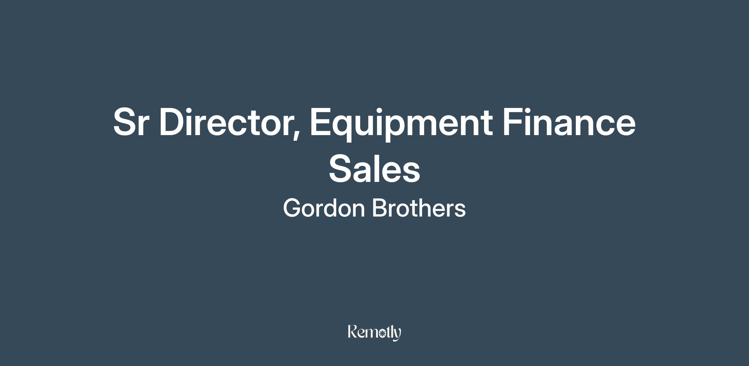 As a growing enterprise, Gordon Brothers Equipment Finance has an opening for a Senior Director, Equipment Finance Sales to join our team. This position reports directly to the Senior Managing Director, Head of North America Equipment Finance and leverages existing relationships as well as expands current network of lessees, lenders, lessors, private equity professionals, investment bankers, attorneys, and consultants to source, evaluate, negotiate, and execute deals for the Equipment Finance business. The successful individual will work all aspects of deals from origination to execution. This role will be responsible for managing business in the Western half of the country and must have an ability to travel domestically 50% or more of the time.