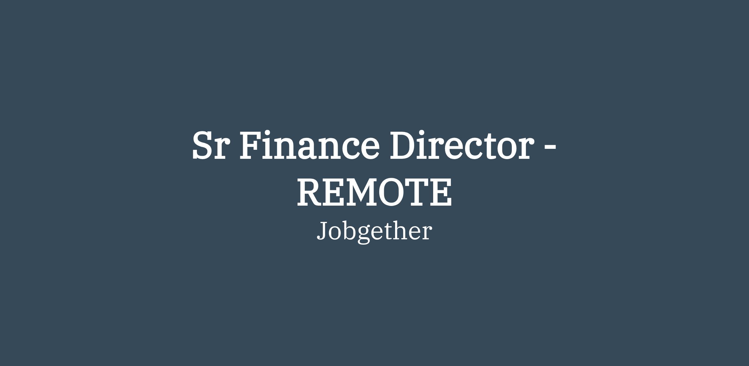 Sr Finance Director - REMOTE