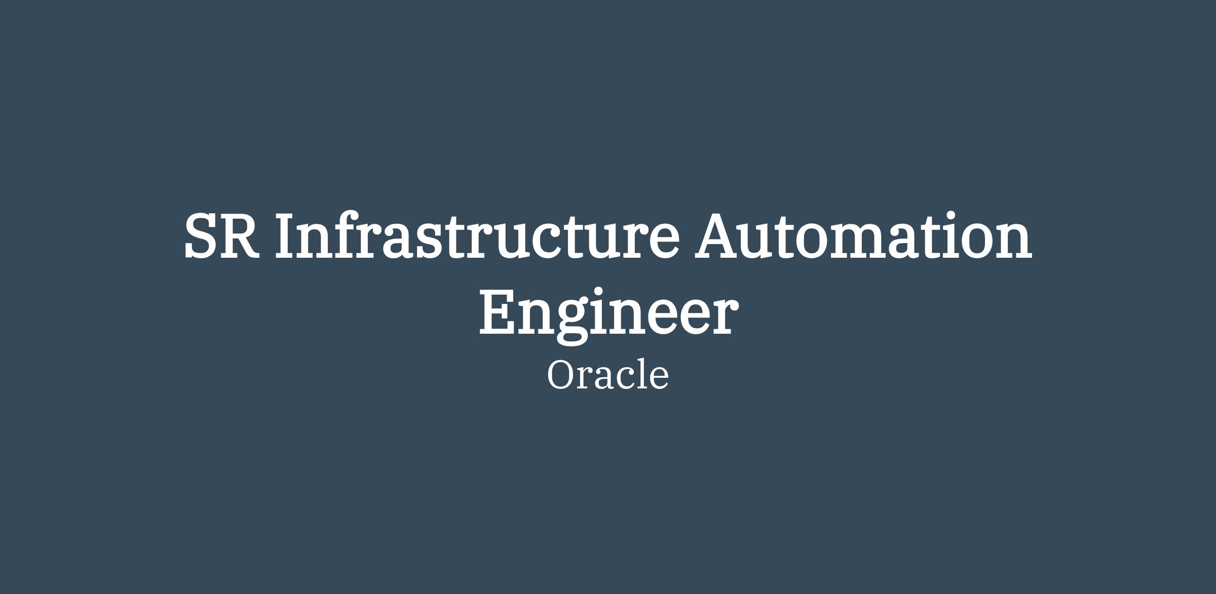 DescriptionOracle is a leading-edge database and cloud computing company, maintaining the full-stack of a SaaS ecosystem from datacenter infrastructure to front-end software. In this role, you will utilize infrastructure-as-code tools such as Chef and Terraform to automate infrastructure provisioning processes.