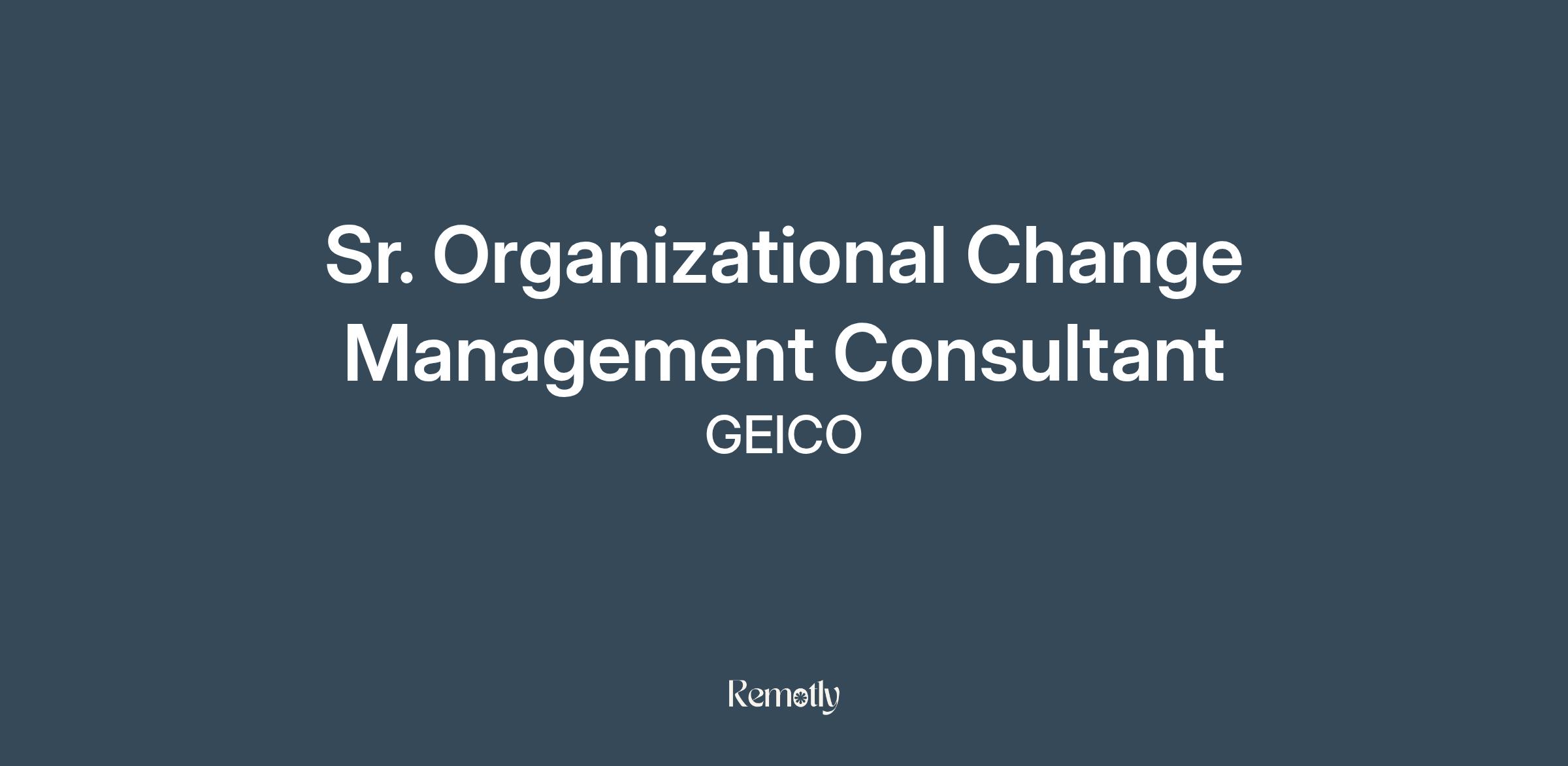 The Sr. Organizational Change Management Consultant will shape and implement our internal Tech change strategy, ensuring alignment and consistency across Tech, Product & AI and the larger GEICO organization. You'll have the opportunity to make a tangible impact on our growing team's tech change landscape. The ideal candidate thrives in a collaborative, dynamic environment and can adapt quickly to meet the needs of our stakeholders.