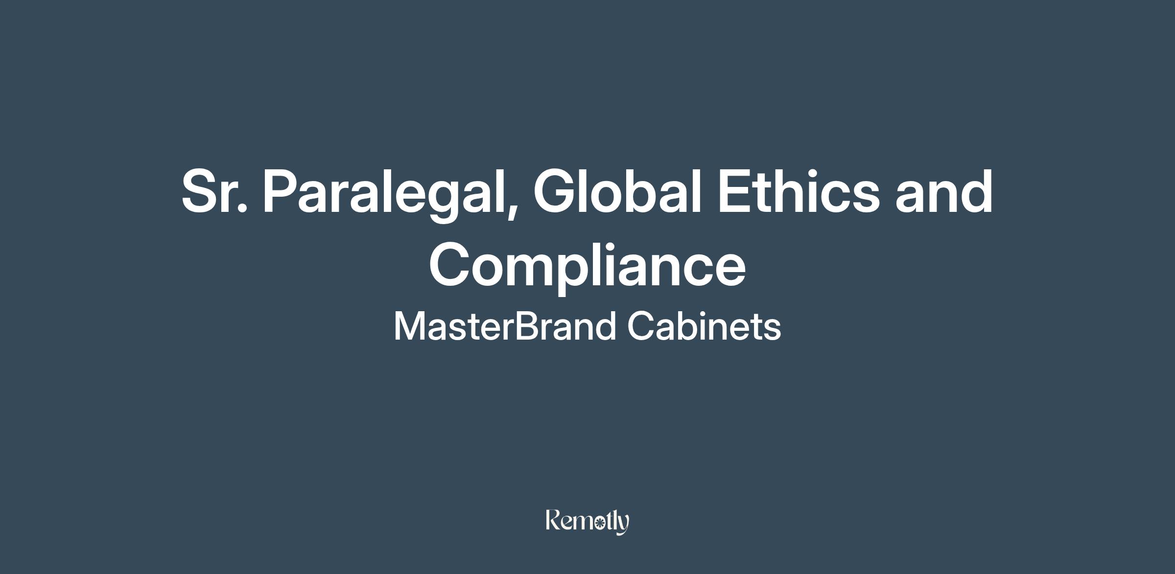 The Sr. Paralegal, Global Ethics and Compliance provides advanced paralegal support to the MasterBrand’s Global Ethics and Compliance team. The Senior Paralegal role requires strong initiative, organizational, project management, and data analytics skills, independent judgment, attention to detail, strong communication skills, and the ability to manage multiple priorities in a fast-paced environment. This position also prepares and handles sensitive and confidential information with an emphasis on maximum discretion. Experience in manufacturing environments or with trade, compliance, or ethics matters is a plus.