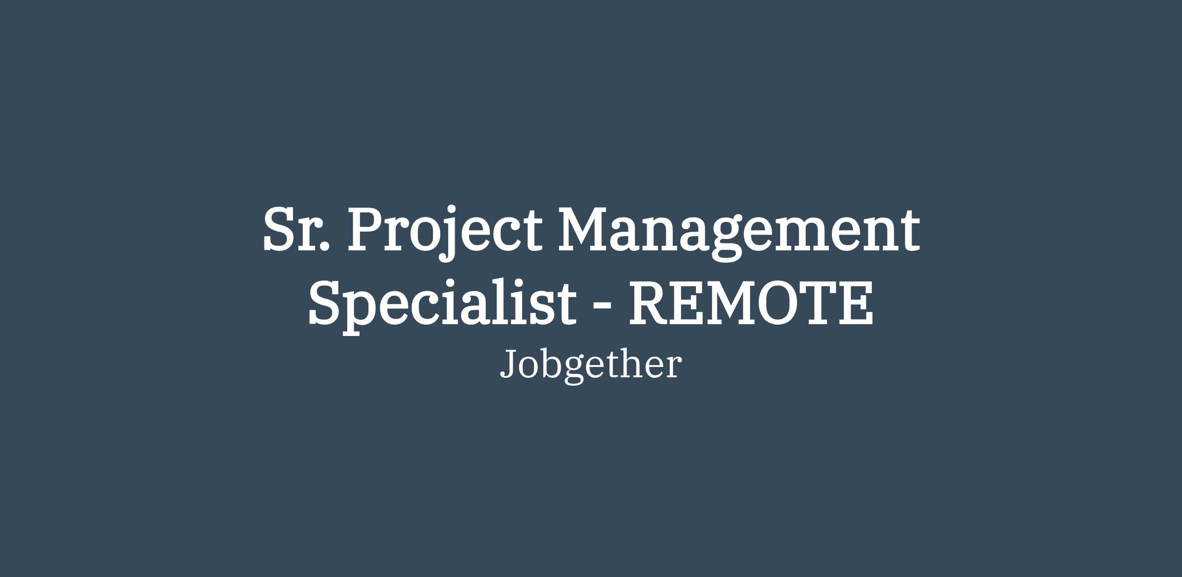 Sr. Project Management Specialist - REMOTE