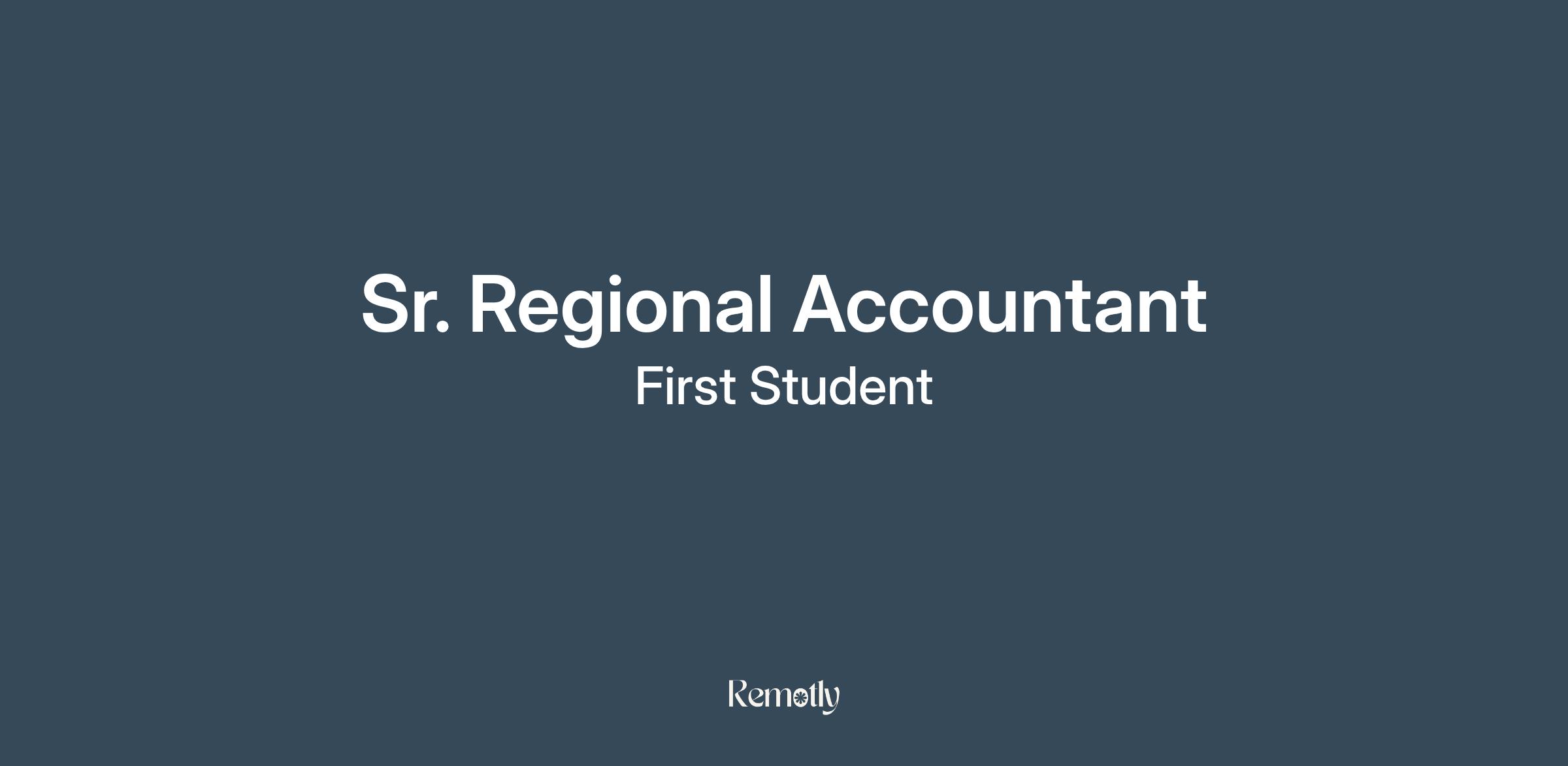 At First Student, finances are the fuel that keeps our company moving. We’re looking for a qualified Sr Regional Accountant to help keep our figures on track with unwavering accuracy. The ideal candidate will have natural passion for accounting and intricate knowledge of assets, liabilities, profit and loss and other financial transactions within an organization. The Sr Regional Accountant will play an important support role, clarifying the financial outlook of our company.
