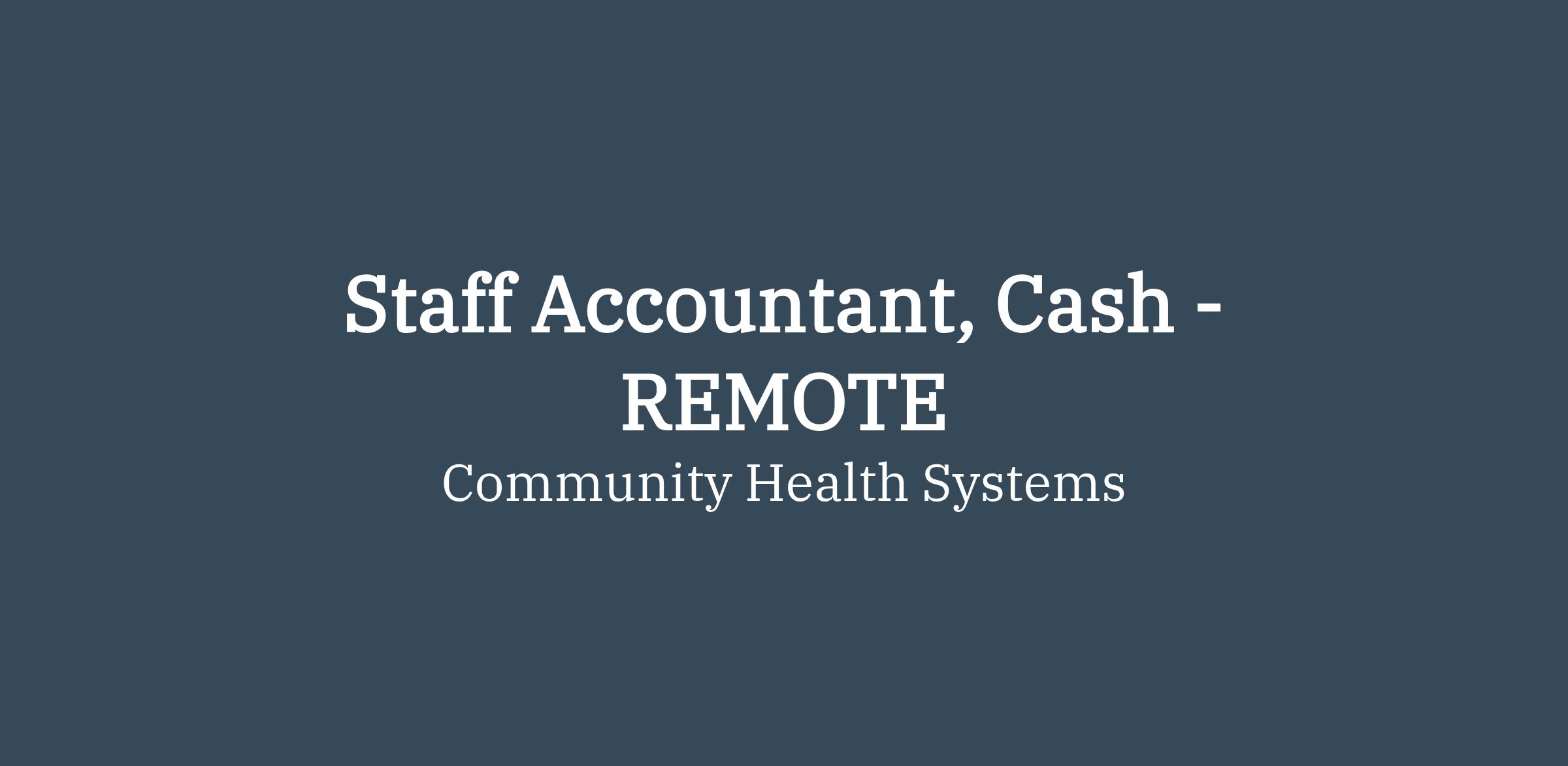 Staff Accountant, Cash - REMOTE