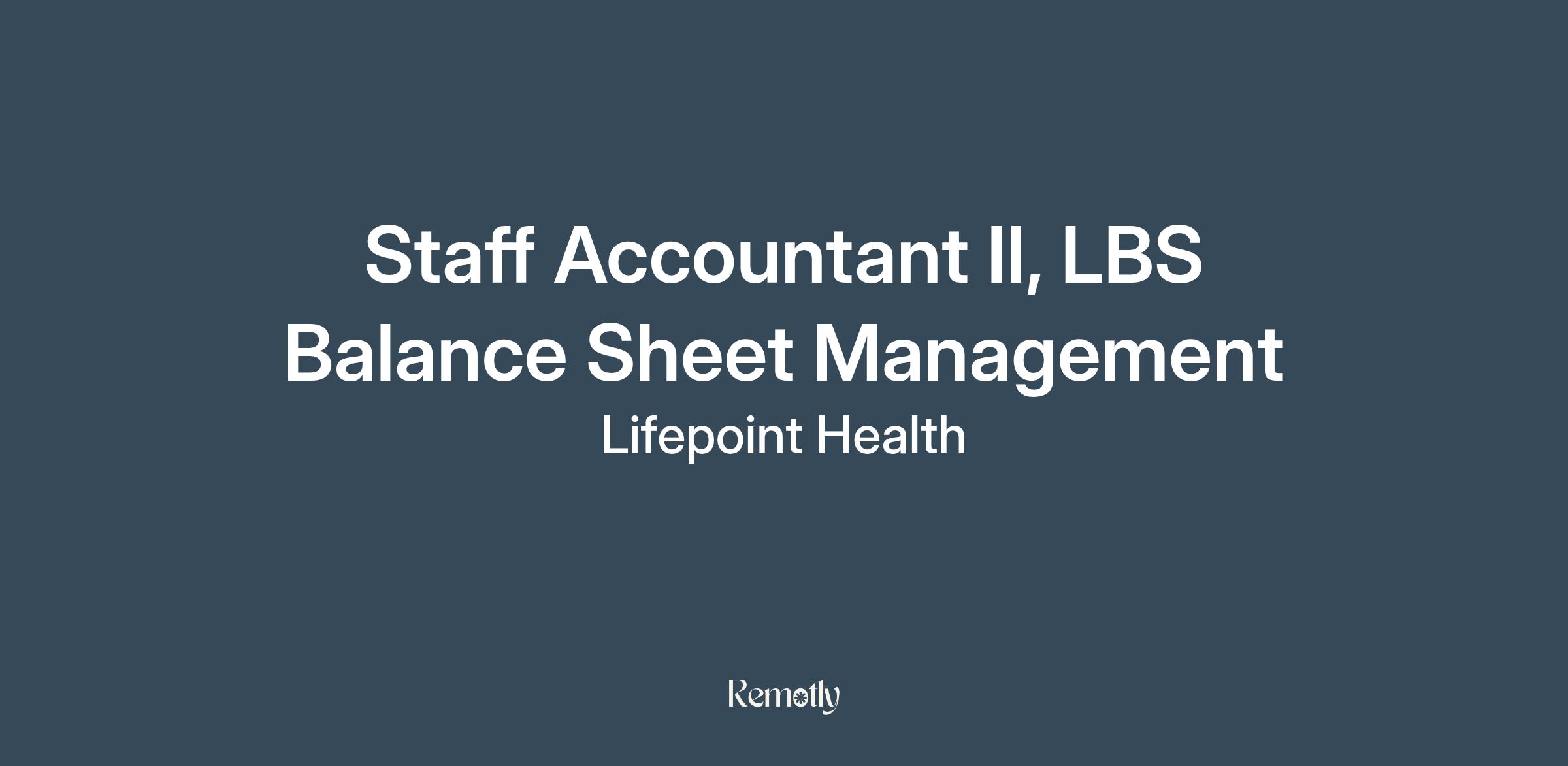 Staff Accountant II, LBS Balance Sheet Management