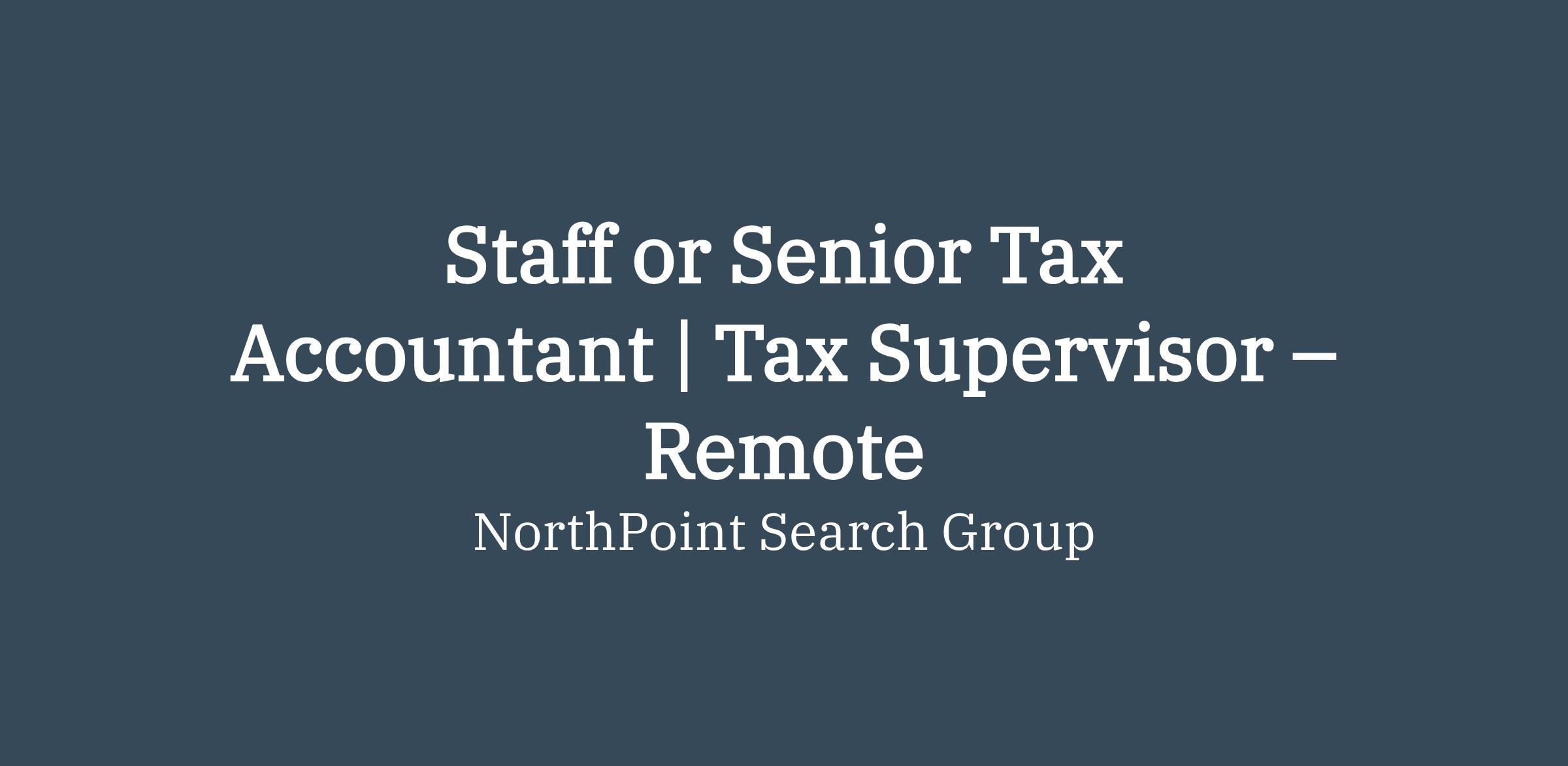 Senior Tax Accountant / Tax Supervisor – REMOTE (Atlanta based CPA Firm)