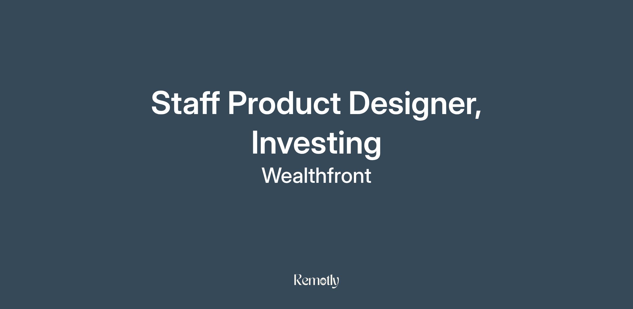 Wealthfront is looking for a Staff Product Designer to join our Investing design team. Reporting directly to the Senior Design Director for the Investing area, you will be joining a tight-knit team of individuals who are passionate about our mission to build a financial system that favors people, not institutions.