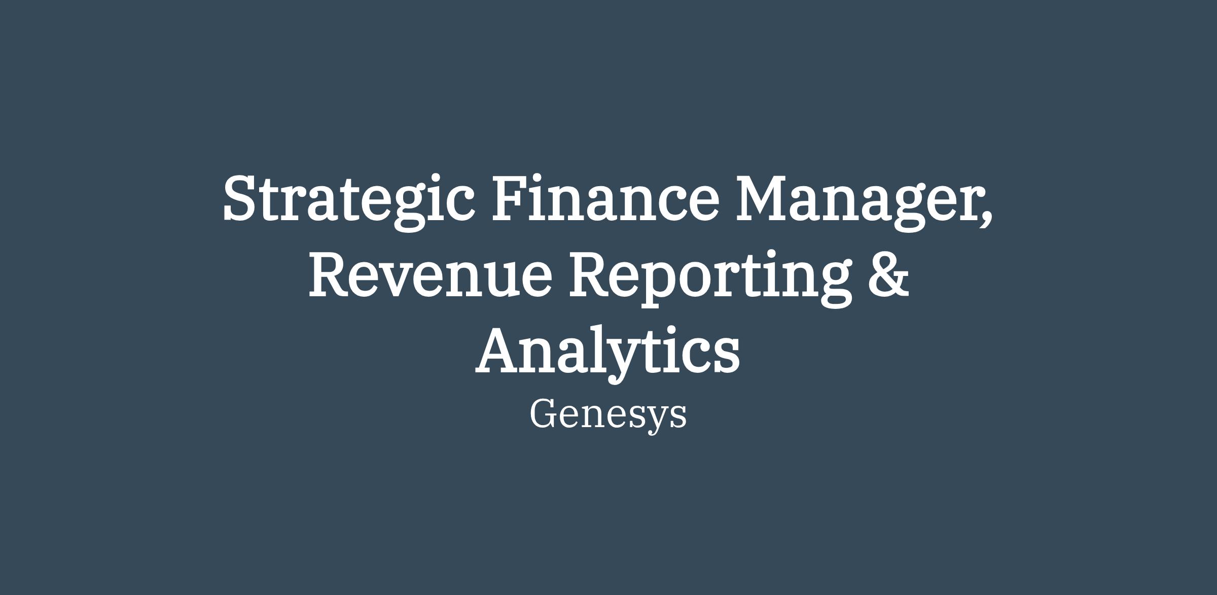 The Strategic Finance Manager for Revenue Reporting and Analytics creates reliable analysis to tell a comprehensive narrative that drives actionable insight. This role partners closely with Customer Success, revenue forecasting, and other cross functional teams to build clear narratives that guide strategic decisions. Genesys is transforming the customer experience landscape with empathy driven innovation and AI powered orchestration, and this role is essential in connecting data to that broader mission. Joining Genesys means becoming part of a global team that is redefining how organizations engage with customers while developing a meaningful and influential finance career.