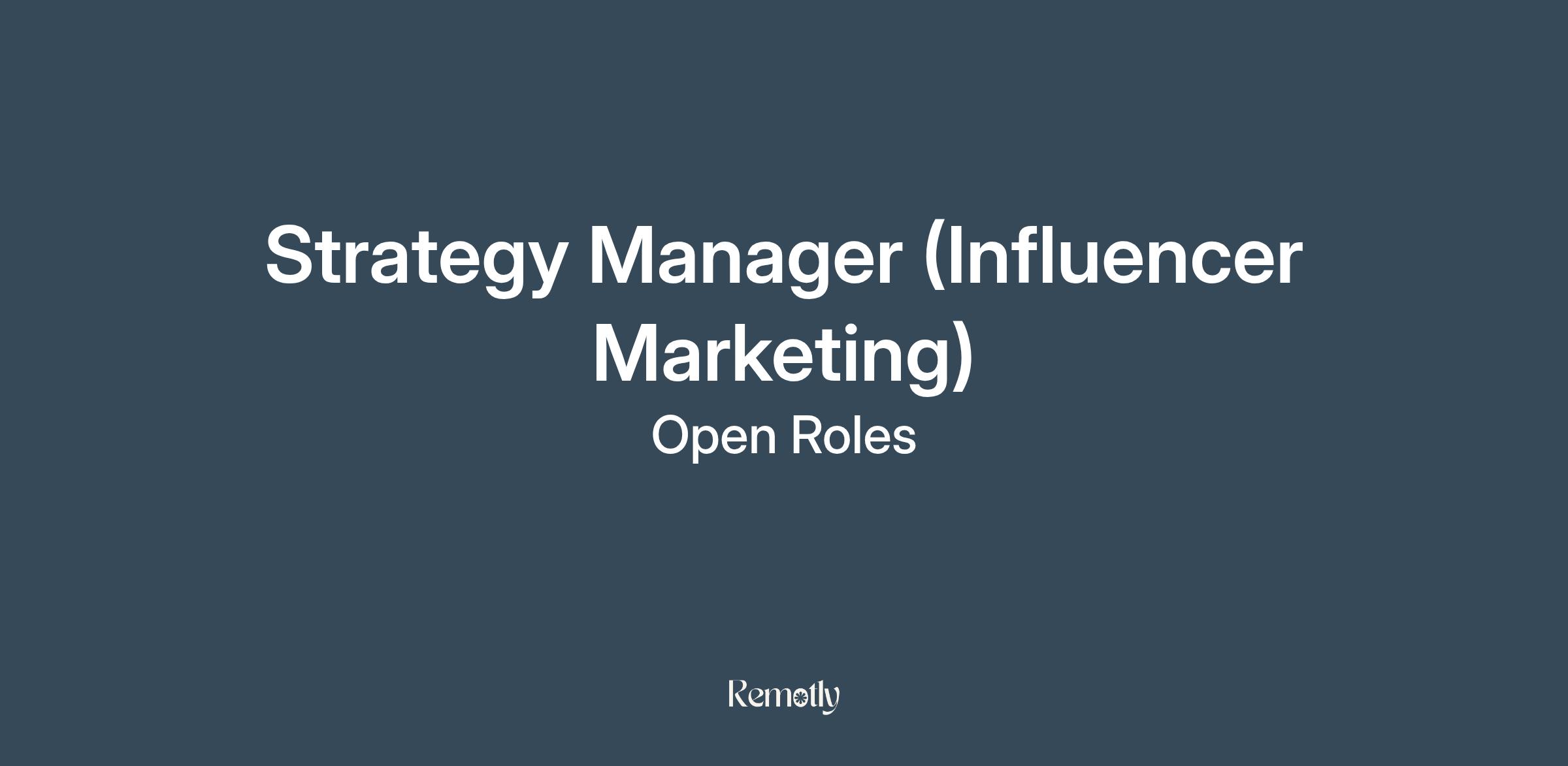 - We’re hiring a Strategy Manager to join our growing team and help shape the future of influencer marketing. You’ll bring cultural insight and creative strategy to life through storytelling, source high-quality creators who align with client goals, and support innovation across campaigns, client renewals, and agency marketing efforts.
