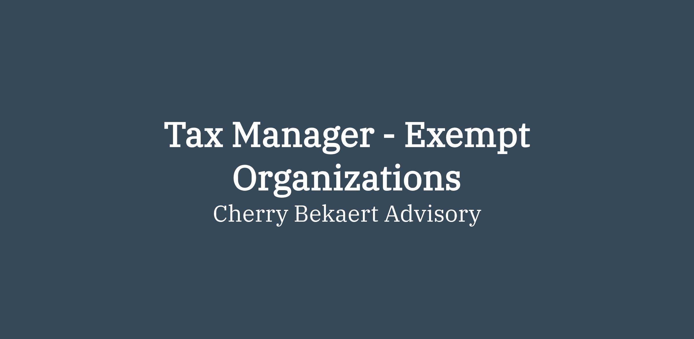 Ranked among the largest accounting and consulting firms in the country, Cherry Bekaert delivers innovative and sophisticated advisory, assurance and tax services to our clients. As a Tax Manager supporting our Not-For-Profit industry, you will serve as a key leader in our Tax practice. Alternatively, we are open to considering a Tax Senior for this position, depending on experience and culture fit. We offer growth potential without having to relocate and the opportunity to join an energetic and talented firm culture near one of our offices or remotely.