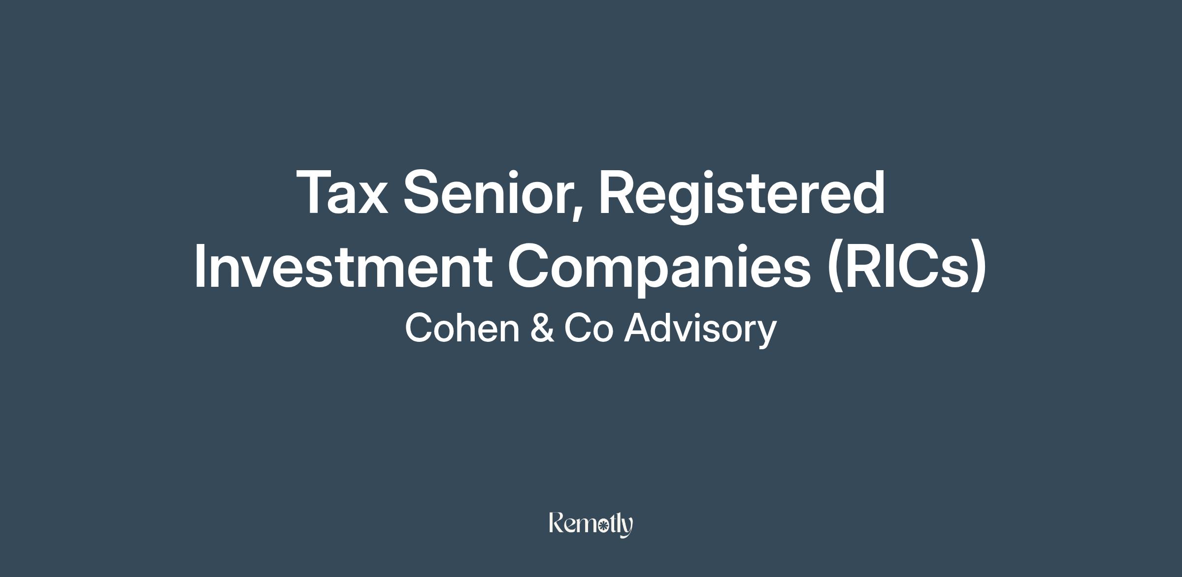 Are you a tax professional looking to take the next step in your career? At Cohen & Co, we believe in putting people first and fostering a culture of growth, collaboration, and excellence. As a Senior on our Registered Investment Company (RIC) Tax team, you’ll prepare and review complex RIC tax returns, work directly with clients, and help mentor junior staff while contributing to innovative, high-quality tax solutions.