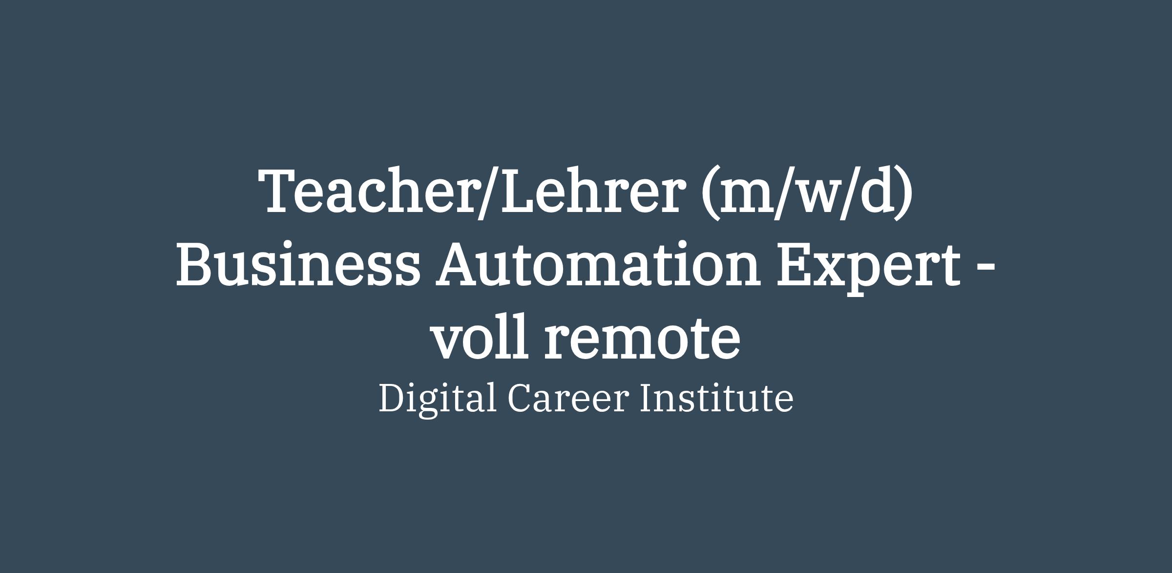 Teacher/Lehrer (m/w/d) Business Automation Expert - voll remote