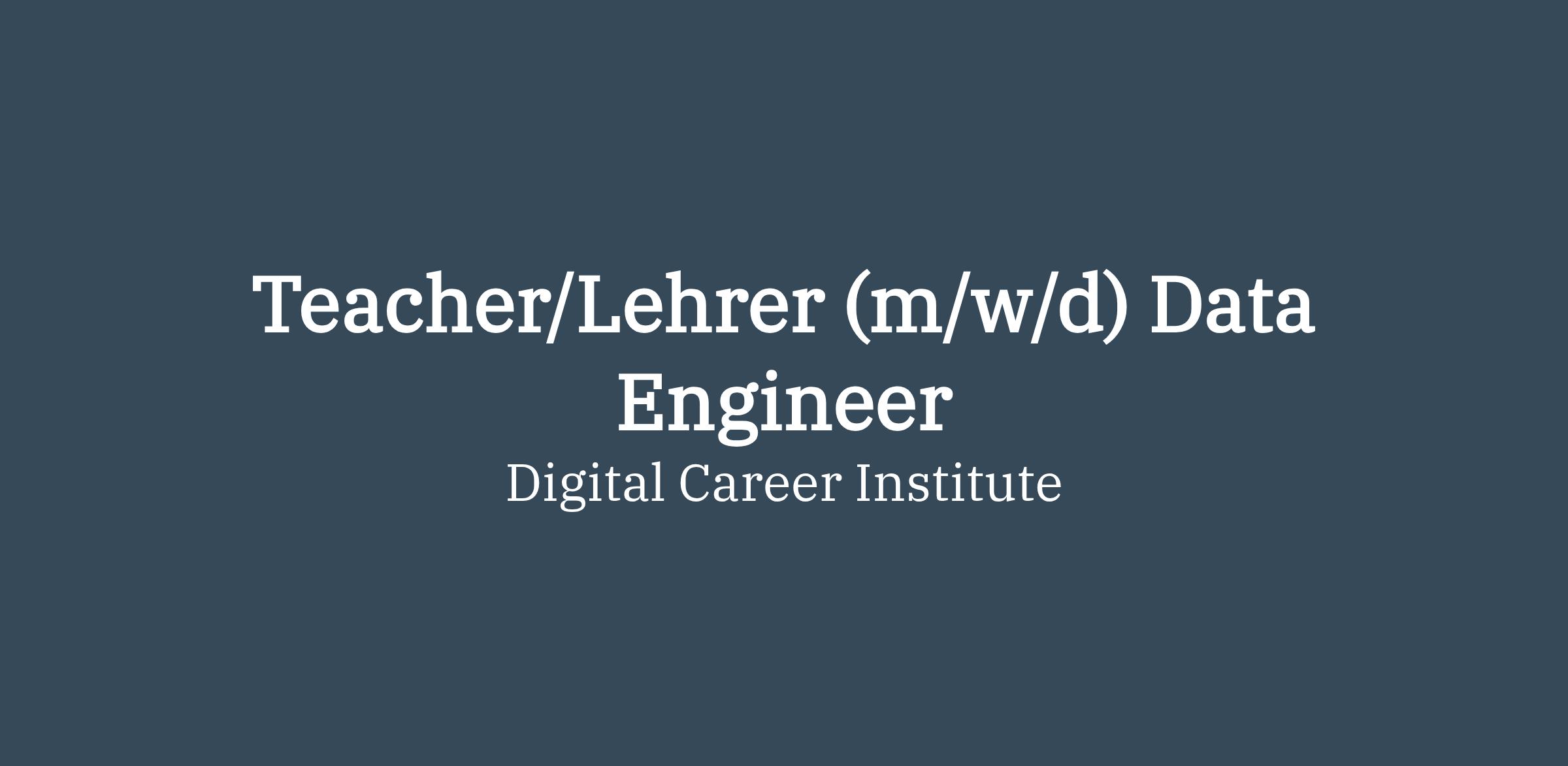 Teacher/Lehrer (m/w/d) Data Engineer