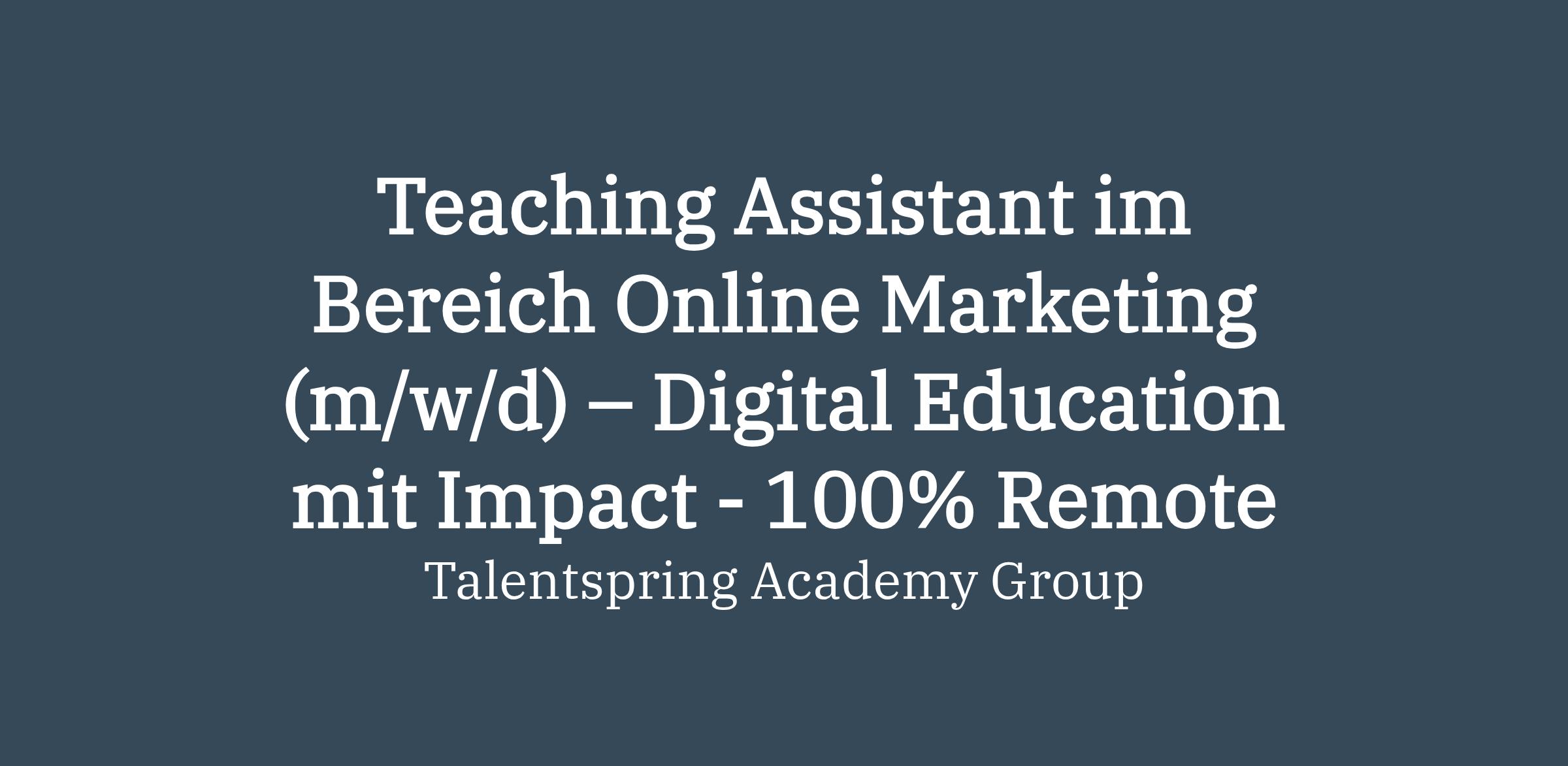 Teaching Assistant im Bereich Online Marketing (m/w/d) – Digital Education mit Impact - 100% Remote
