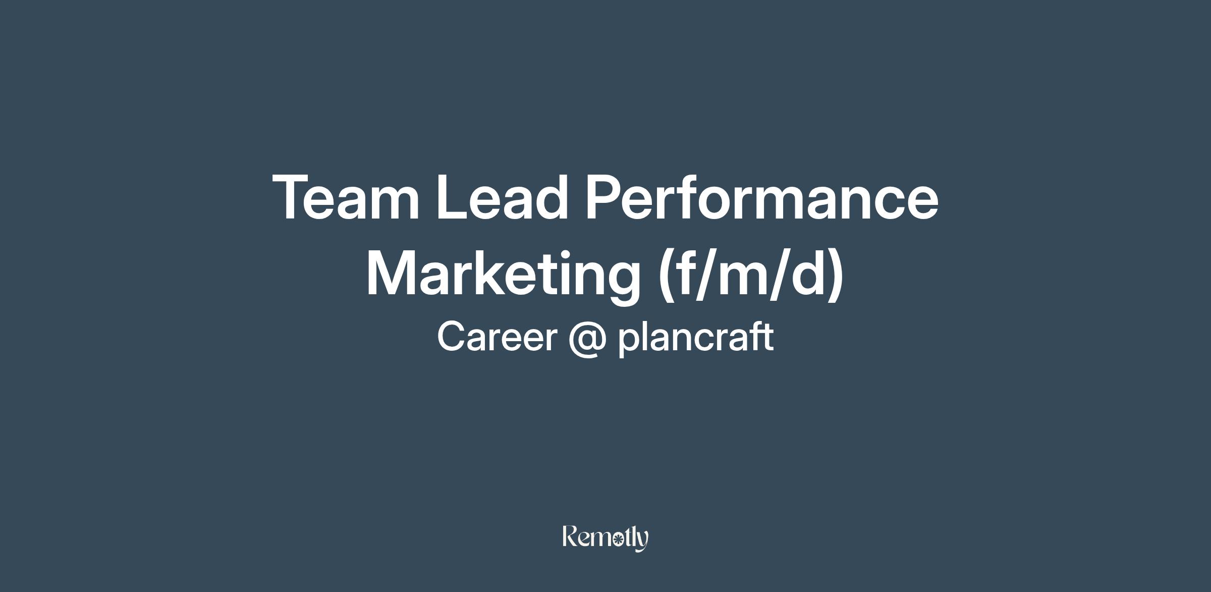 You know how to turn clicks into customers, have a strong intuition for numbers and people, and want to build something truly great? Then join plancraft as our new Team Lead Performance Marketing (f/m/d)! In this full-time role, you’ll lead a team of expert performance marketers, set the strategic direction, and bring in fresh ideas. You’ll collaborate closely with our Head of Marketing and fellow Team Leads to drive growth, own performance, and create real impact—not just on paper, but in the business itself.