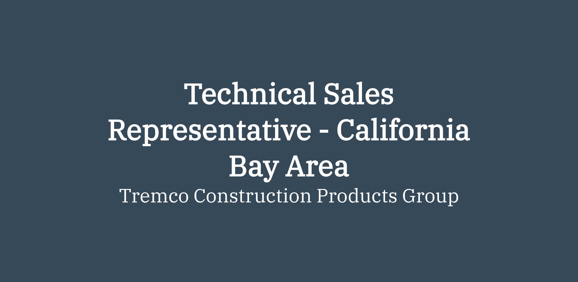 This position is in the Tremco Commercial Sealants and Waterproofing Division covering the Bay Area in or around San Jose, Oakland, San Francisco, Walnut Creek, etc.