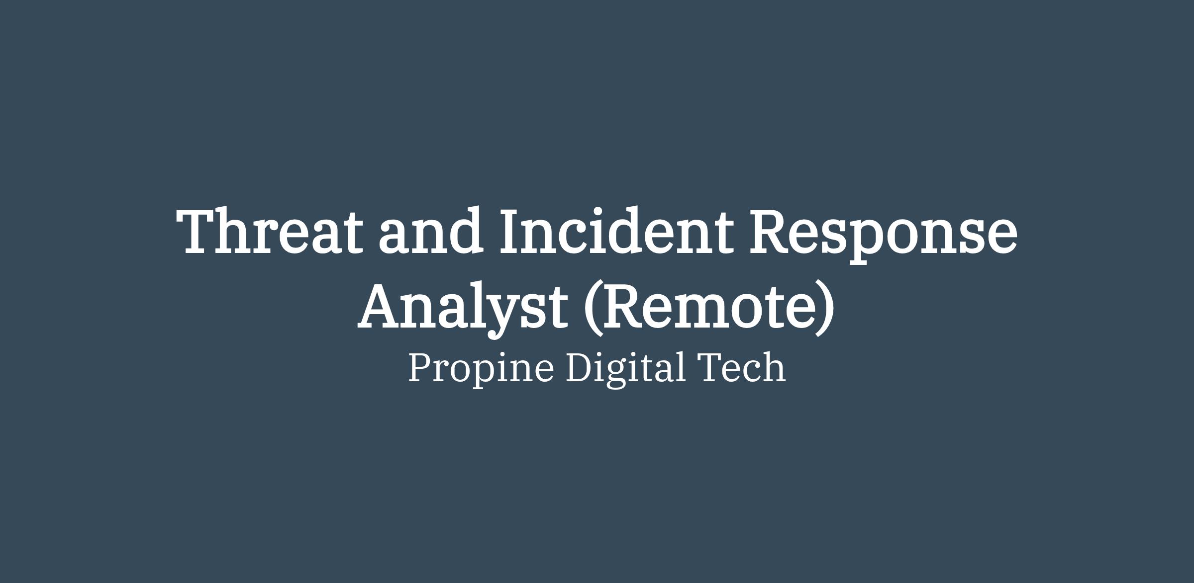 Position Title: Threat and Incident Response Analyst