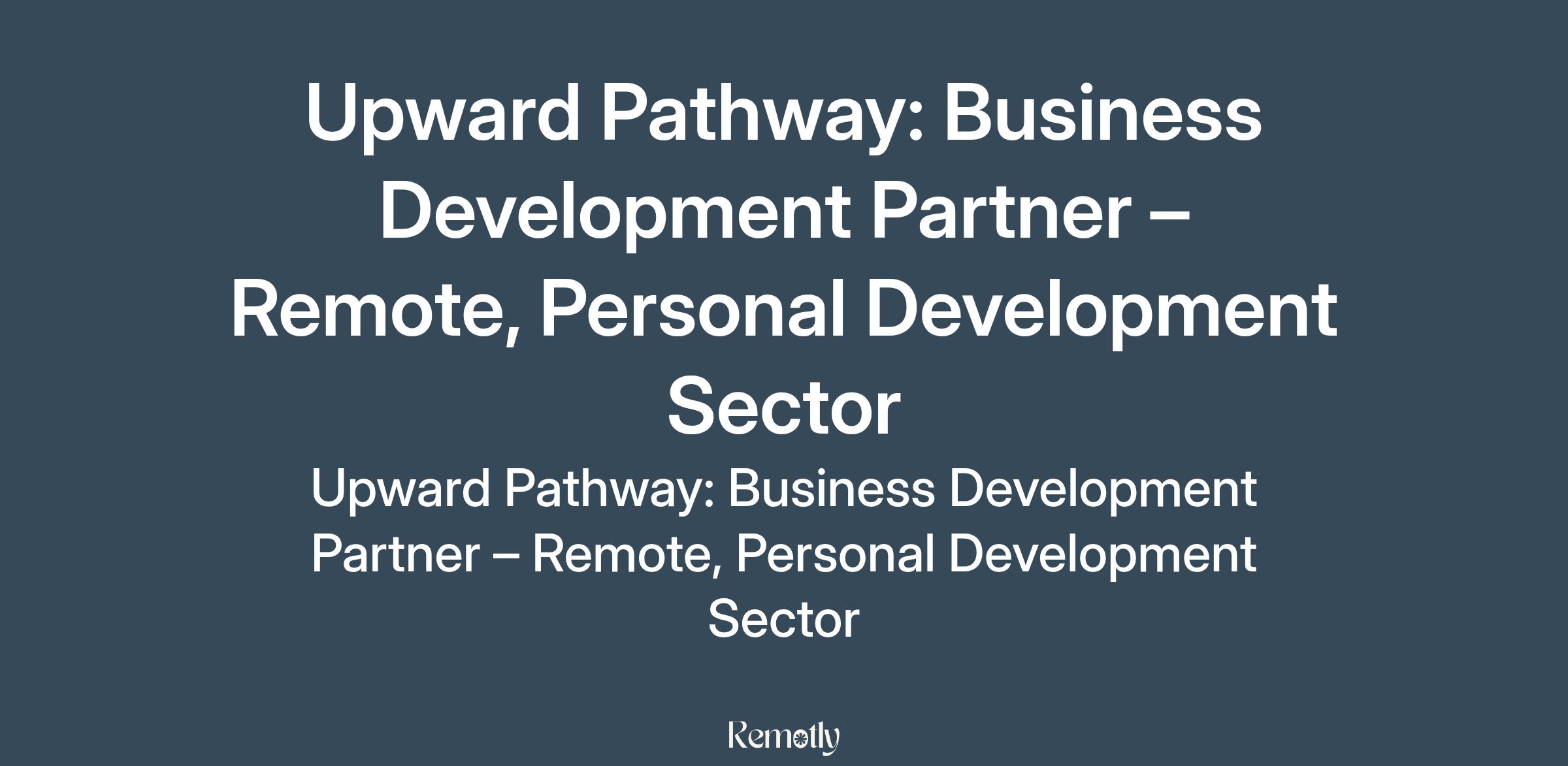 Are you a motivated professional seeking a flexible remote role in the personal development space? Upward Pathway, a France-based business partnering with a global education company, is expanding its marketing and client engagement team.