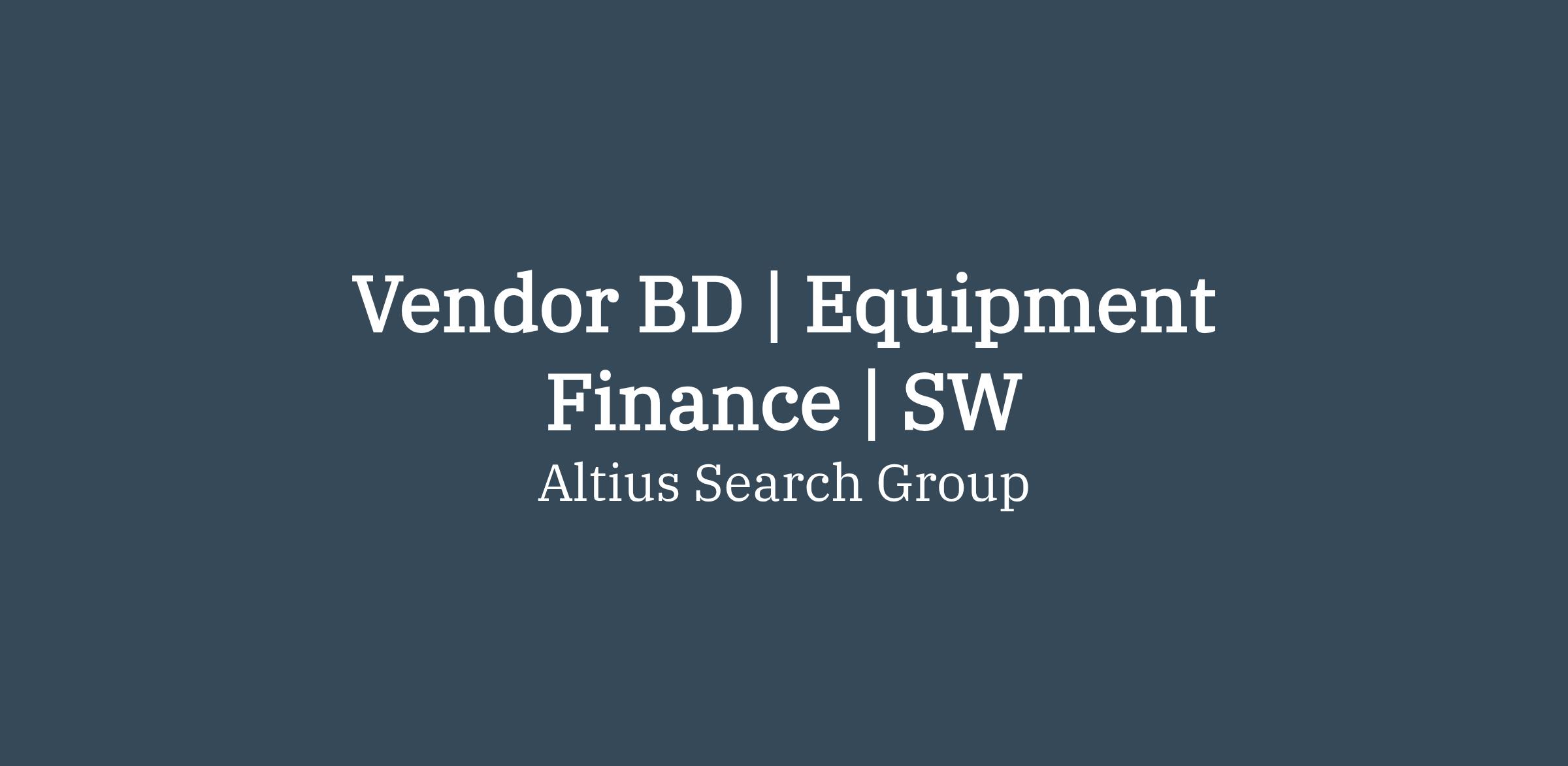 Altius Search Group is recruiting for a Vendor Business Development position for one of our clients in the Equipment Finance Industry. Our Client is an equipment finance lessor that partners with dealers, distributors, and manufacturers to help provide financing solutions for their customers. This is a remote position targeting customers in a Southwest territory.